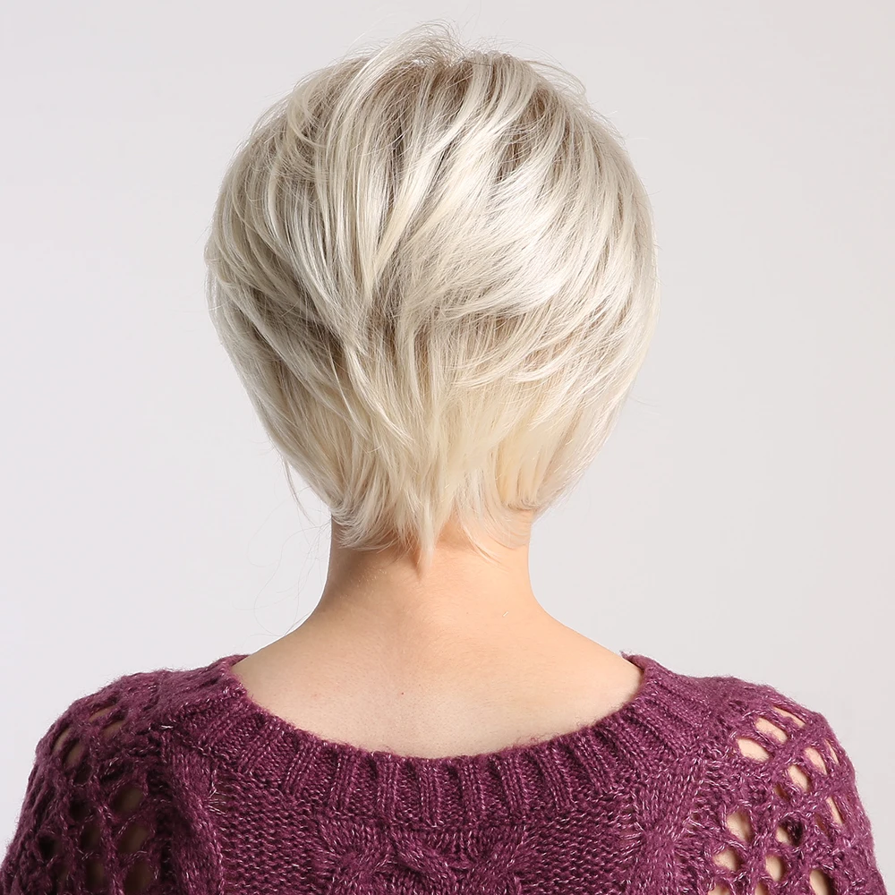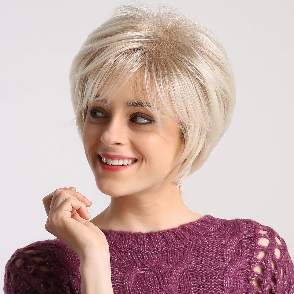 ESIN светильник-коричневый Омбре белые светлые короткие волосы натуральный ежедневный парик с челкой фронтальные синтетические парики боб парик женские парики