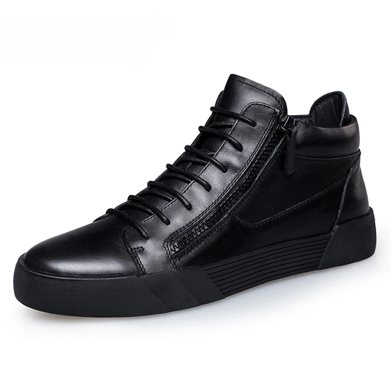 Ботинки мужские из натуральной кожи, зимние, черные, в стиле ретро, размер 46