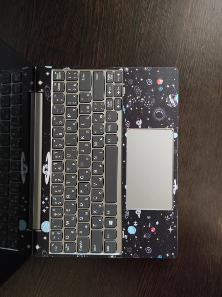 Идеальное дополнение — теперь планшет-трансформер в одном стиле с сумкой. У планшета Lenovo нестандартный размер, сделали всё ровно по замерам. Из оставшихся элементов отлично оформилась клавиатура, получилось стильно. Трудности возникли с разметкой и вырезанием отверстия под камеру. Клеится надёжно, после отдирания следов нет. Материал фактурный, планшет в руках не скользит. Большое спасибо! Рекомендую!
