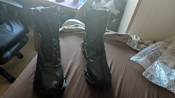 Отличные ботинки, размер s соответствует американскому размеру 9,5-43, но я думаю, что должен был получить европейский размер 44, еще не уверен, мне нужно будет их носить, это удобно для моей ноги 9,5 NZ, но это нормально, это идеально подходит для охоты, Порадованная кожей, она прочная и долговечная, подошва потрясающая, очень жесткая для моего охотничьего стиля.