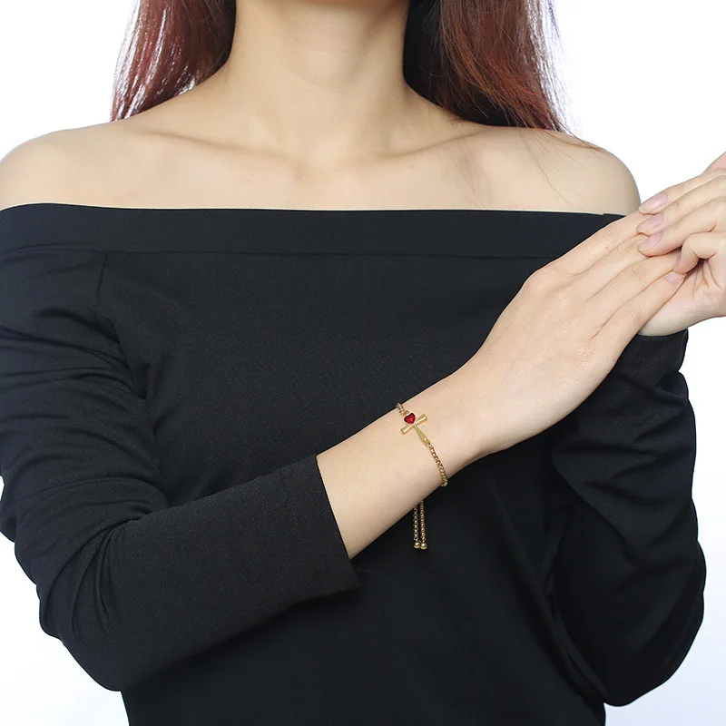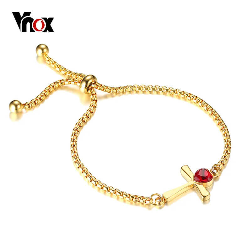 Vnox темпераментный регулируемый браслет с красным сердцем из фианита, очаровательный браслет для женщин и девушек из нержавеющей стали, женские элегантные ювелирные изделия Вечерние