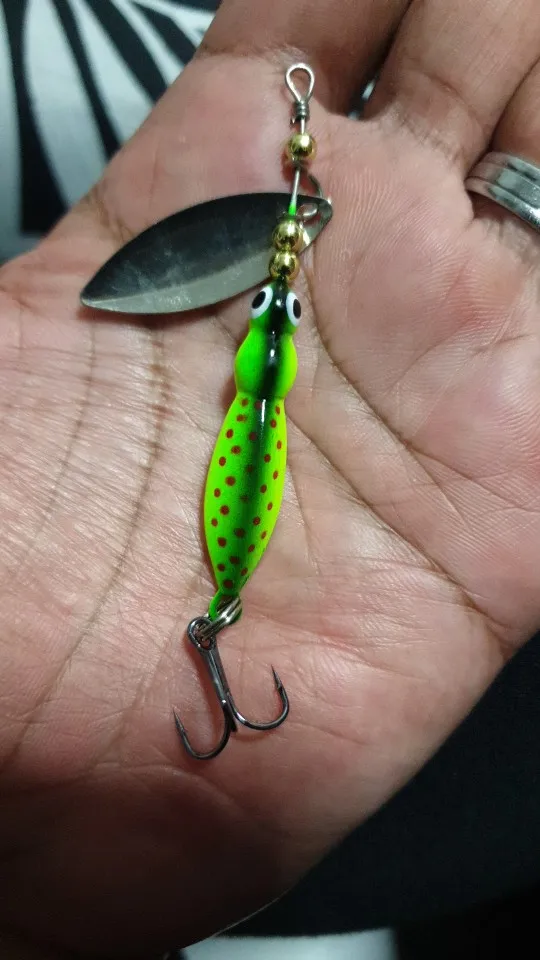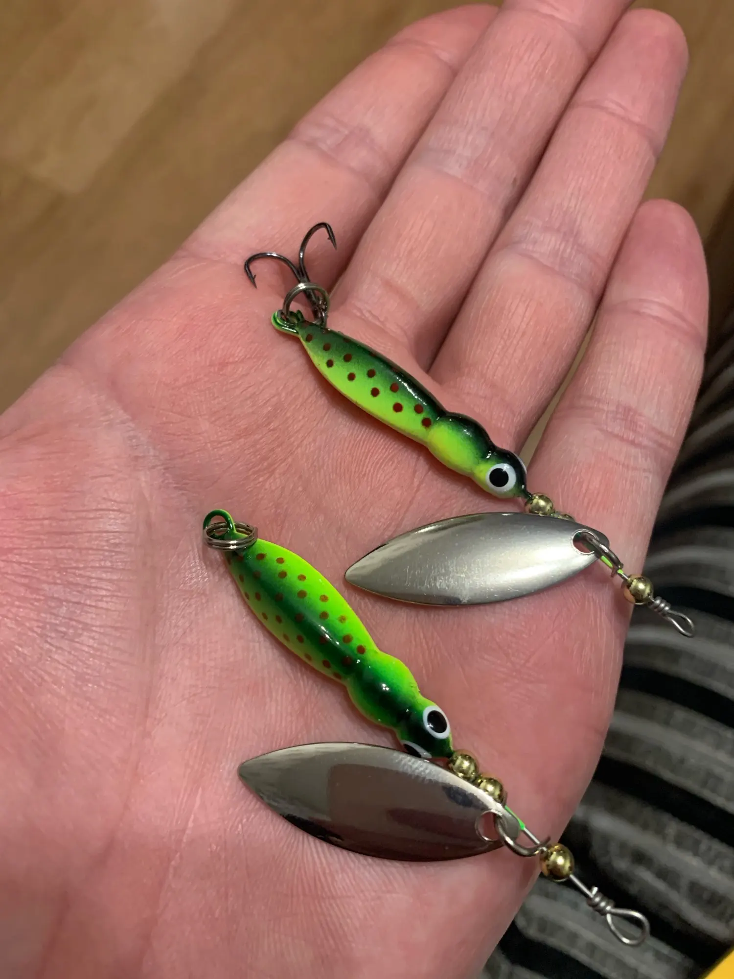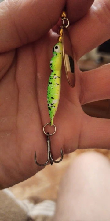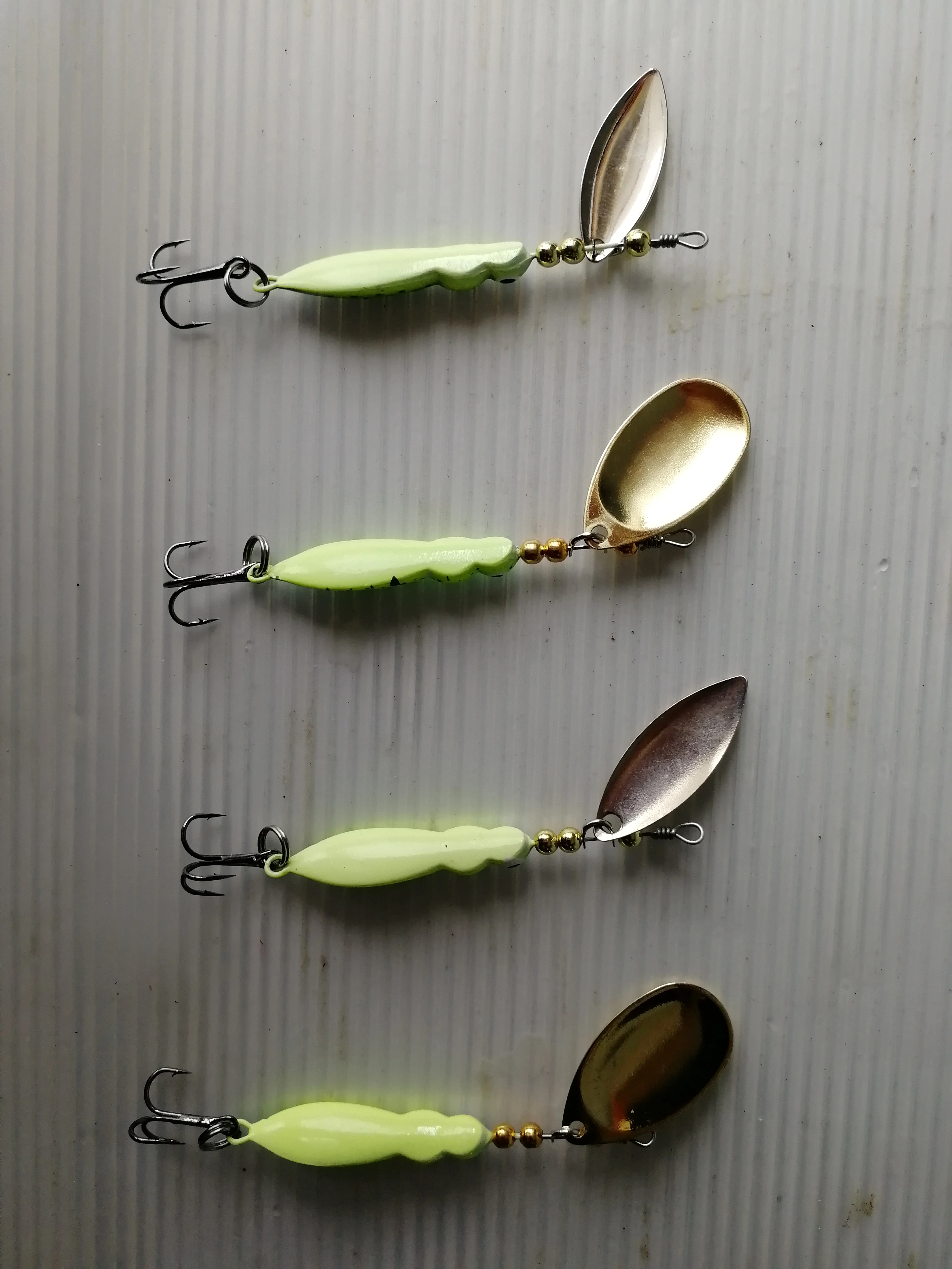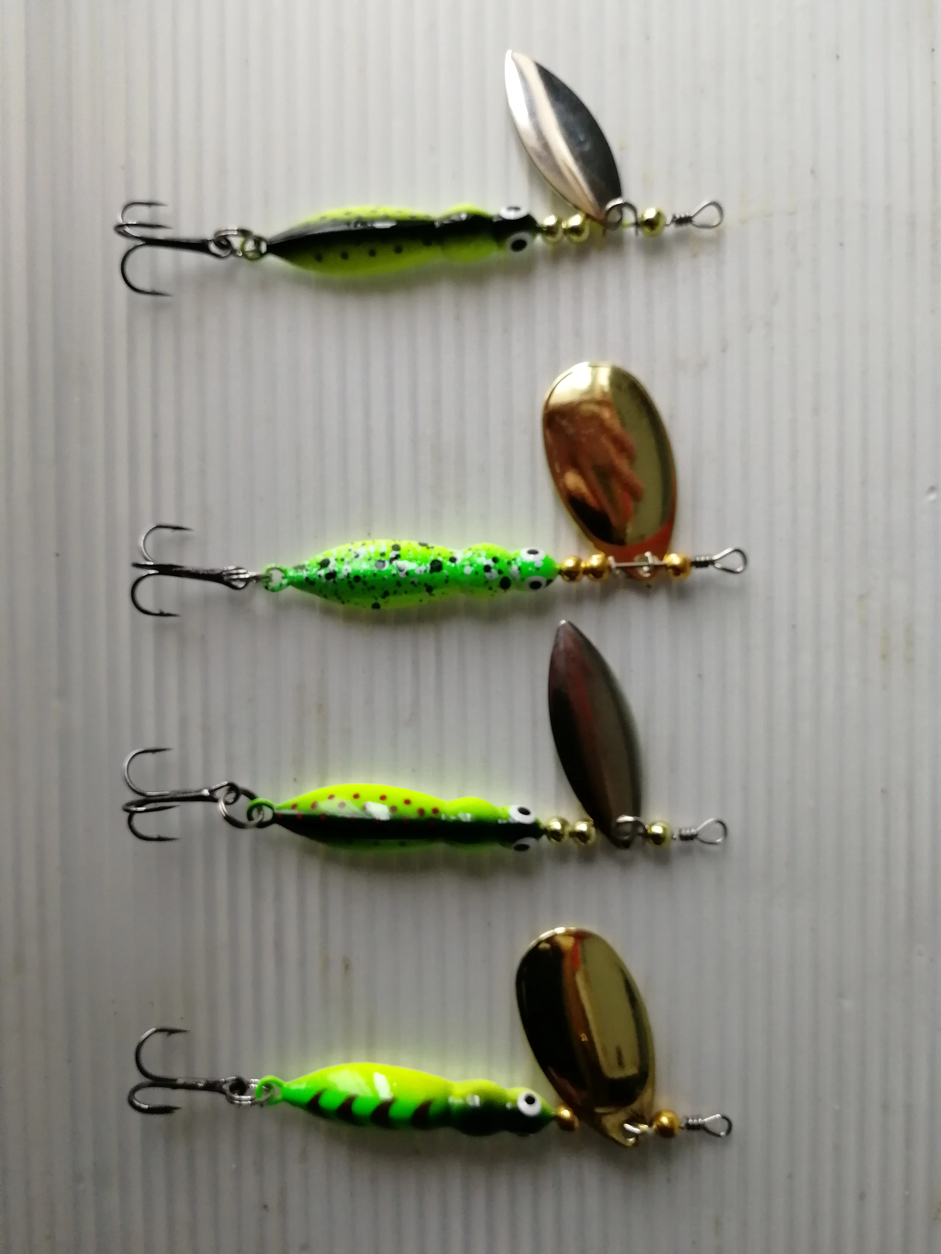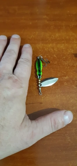 Разловил при первой рыбалке. Щука отказывалась брать и силикон, и воблеры. Решил опробовать эту вертушку.За полчаса три щуки, и три схода, скорее всего из за маленьких тройников, думаю, что заменить, и проблем не будет. Летают, как настоящие))