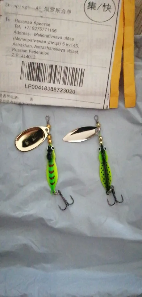 Заказ быстро был отправлен и соответственно доставка была так же быстрая. Упаковано хорошо и претензий нет. Качество не плохое, соответствует описанию и фото. Две приманки абсолютно одинаковые, точки только на одной чёрные, а на другой красные.
