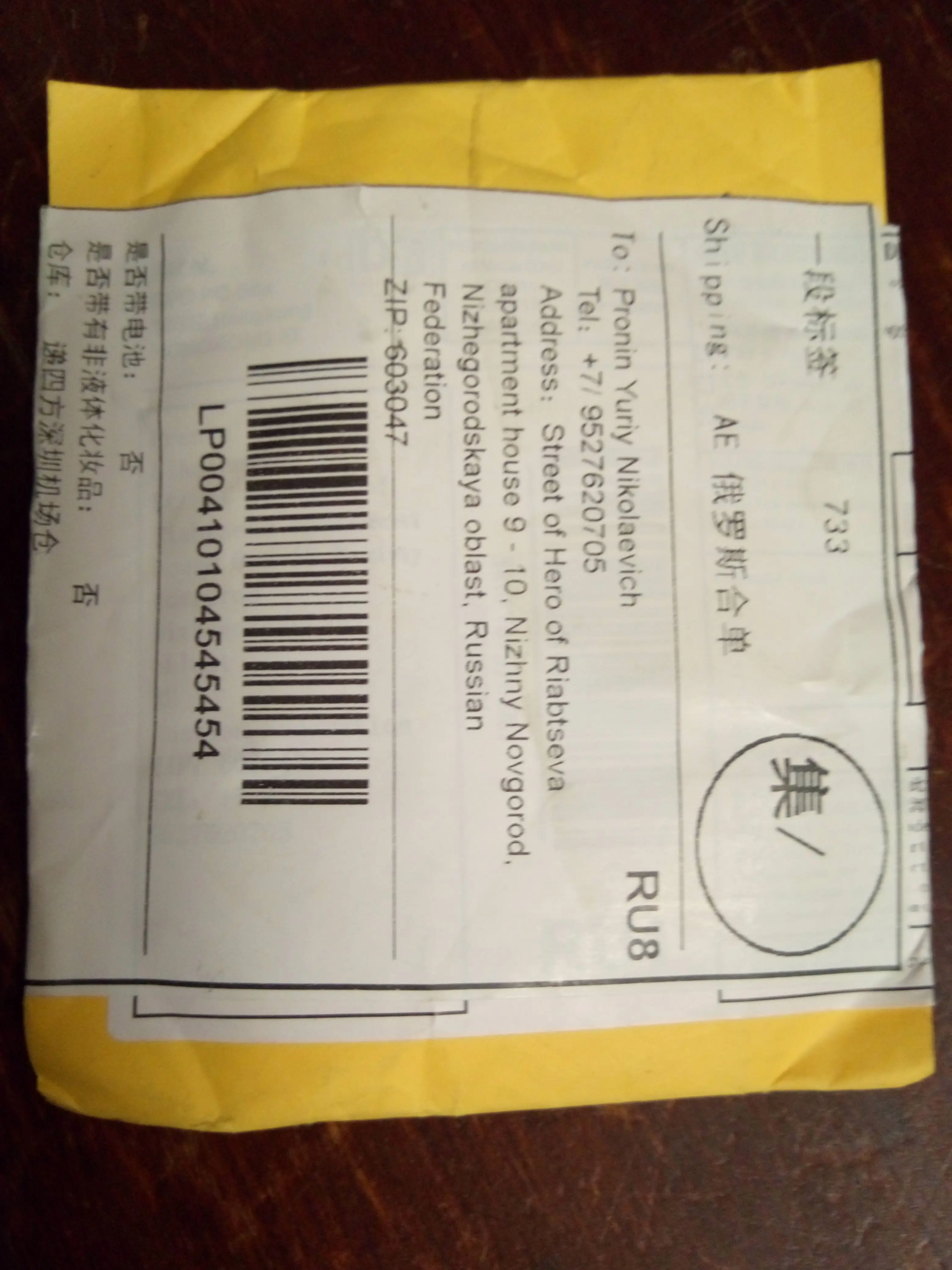 Страна: RU Color: D 4 Доставка: Cainiao Super Economy 29.01.2021