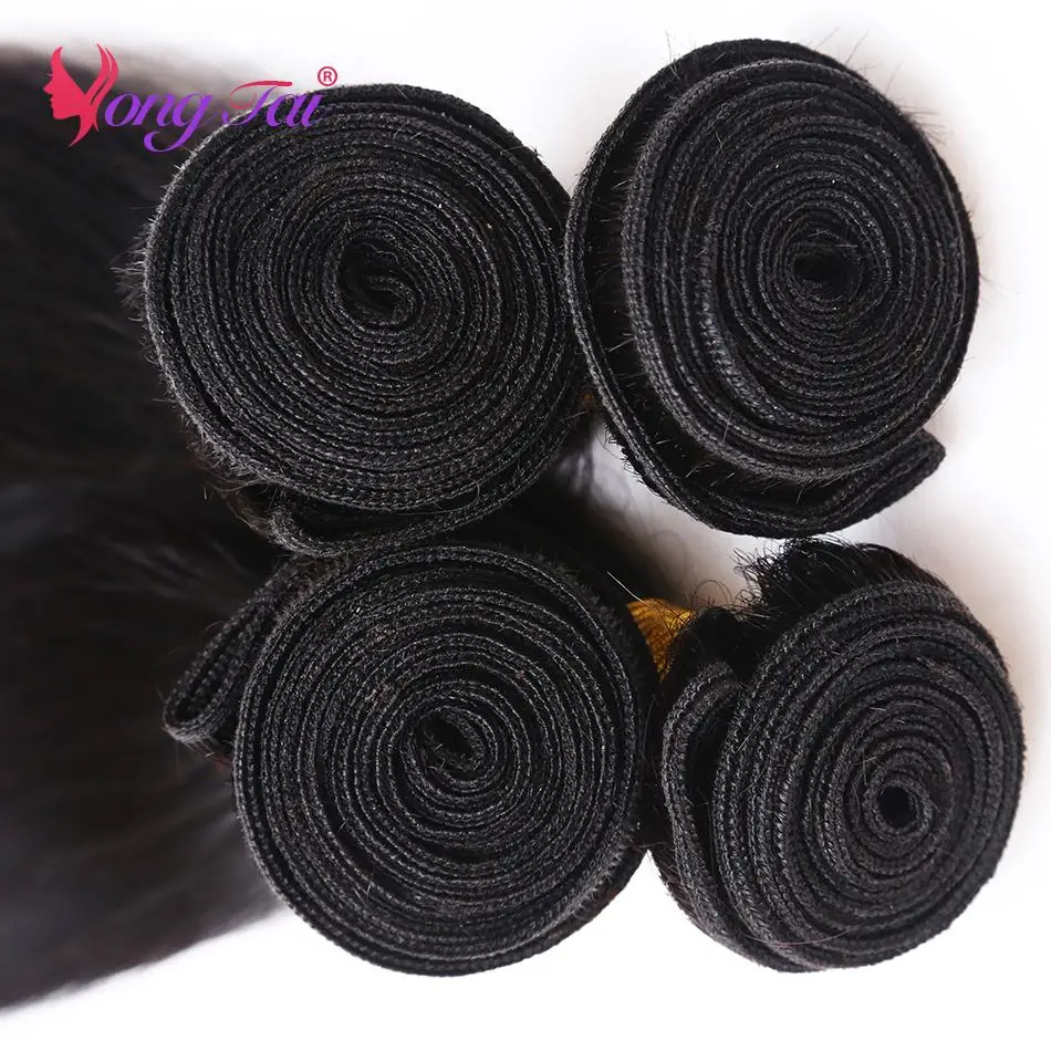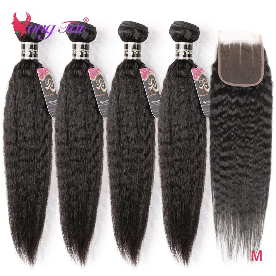 Бразильские курчавые прямые волосы YuYongtai, плетеные 4 пряди с застежкой, 100% человеческие волосы, 4x4, кружевные волосы без Реми, среднее соотношение