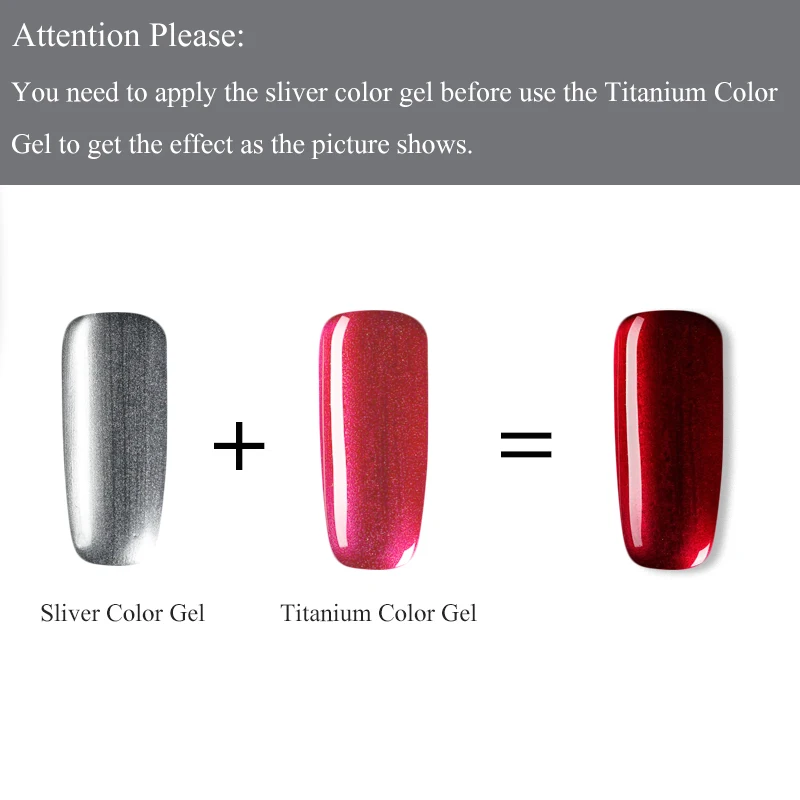 3. Так как некоторые цвета очень светильник, пожалуйста, нанесите гель для ногтей на ноготь, тогда вы можете увидеть правильный цвет, такой же, как в описании.