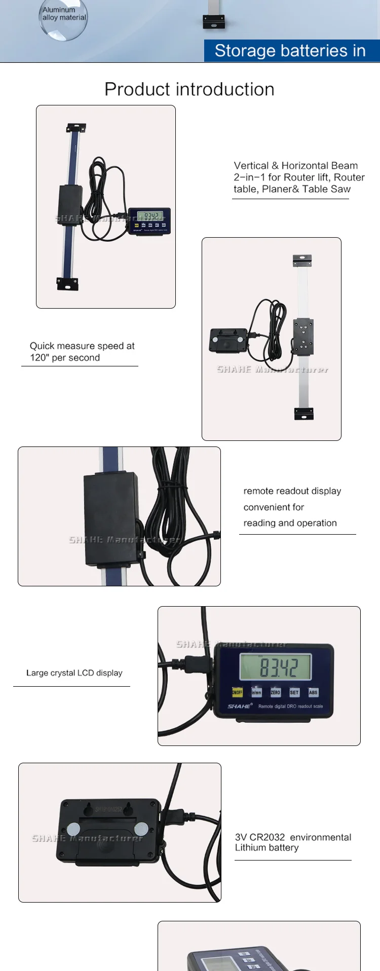 1. В вертикальном и горизонтальном положении луч 2-в-1 для маршрутизатор lift, фрезерный станок, планер и Круглопильный Станок2. Быстрое измерение скорости 120 "в секунду3. Большой Кристальный ЖК-дисплей4. Удаленное считывание дисплея удобно для чтения и работы5. Магнитное и зажимное оборудование для удаленного считывания6. Дюймовое, Фракционное и метрическое считывание7. Монтажное оборудование в комплекте8. Он используется для оснащения вместе с различными промышленными токарными станками и обновления старого токарного станка