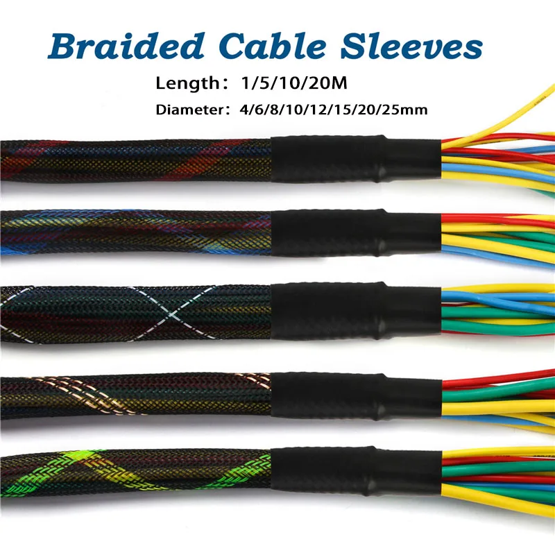 151020 м плотный ПЭТ Плетеный оплетенный рукав, провод для кабеля, плетеный изолированный защитный DIY 24681012152025 мм