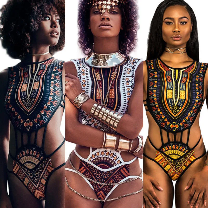 Новинка, Африканское бикини, Женский цельный купальник 2018, бандажный купальный костюм с лямкой на шее, купальник с цветочным принтом, пляжная одежда с высокой талией, бикини!