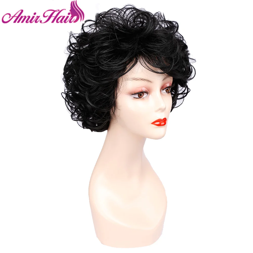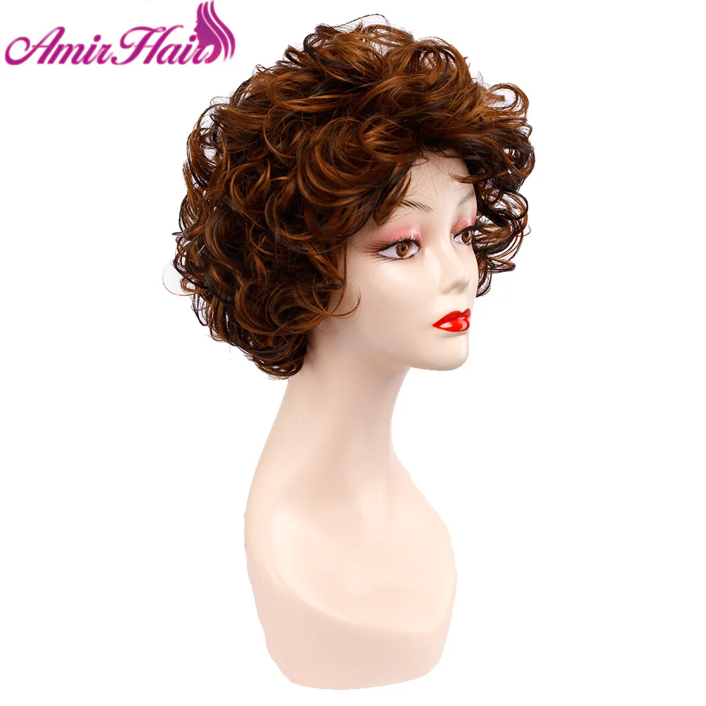 Amir Короткие вьющиеся парики, парик из синтетических волос, черный короткий парик для женщин, коричневый смешанный светлый черный парик для косплея