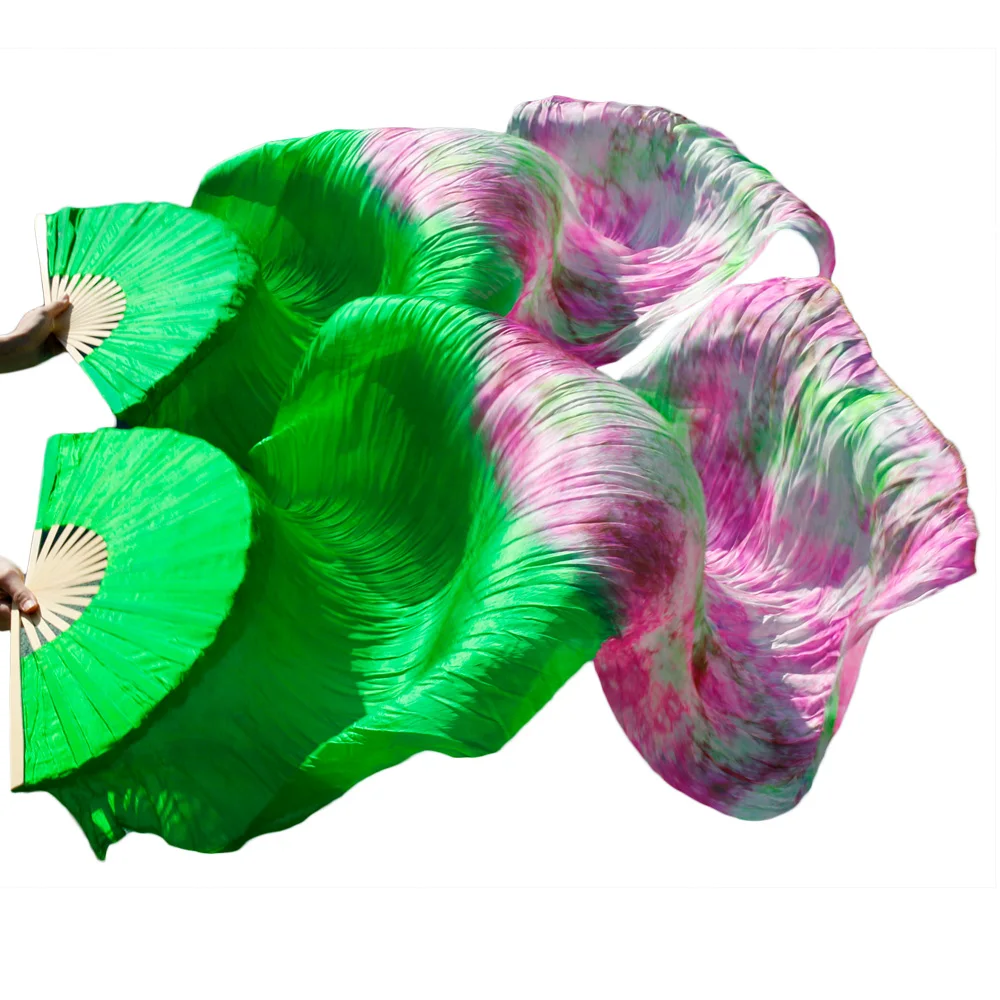 Оптовая продажа 1 правый вентилятор + 1 левый вентилятор 5 размер * 0,9 м (XX "* 35") Ручная роспись танец живота шелковая Веерная вуаль, зеленый цвет смешанный цвет