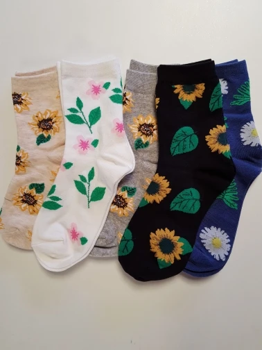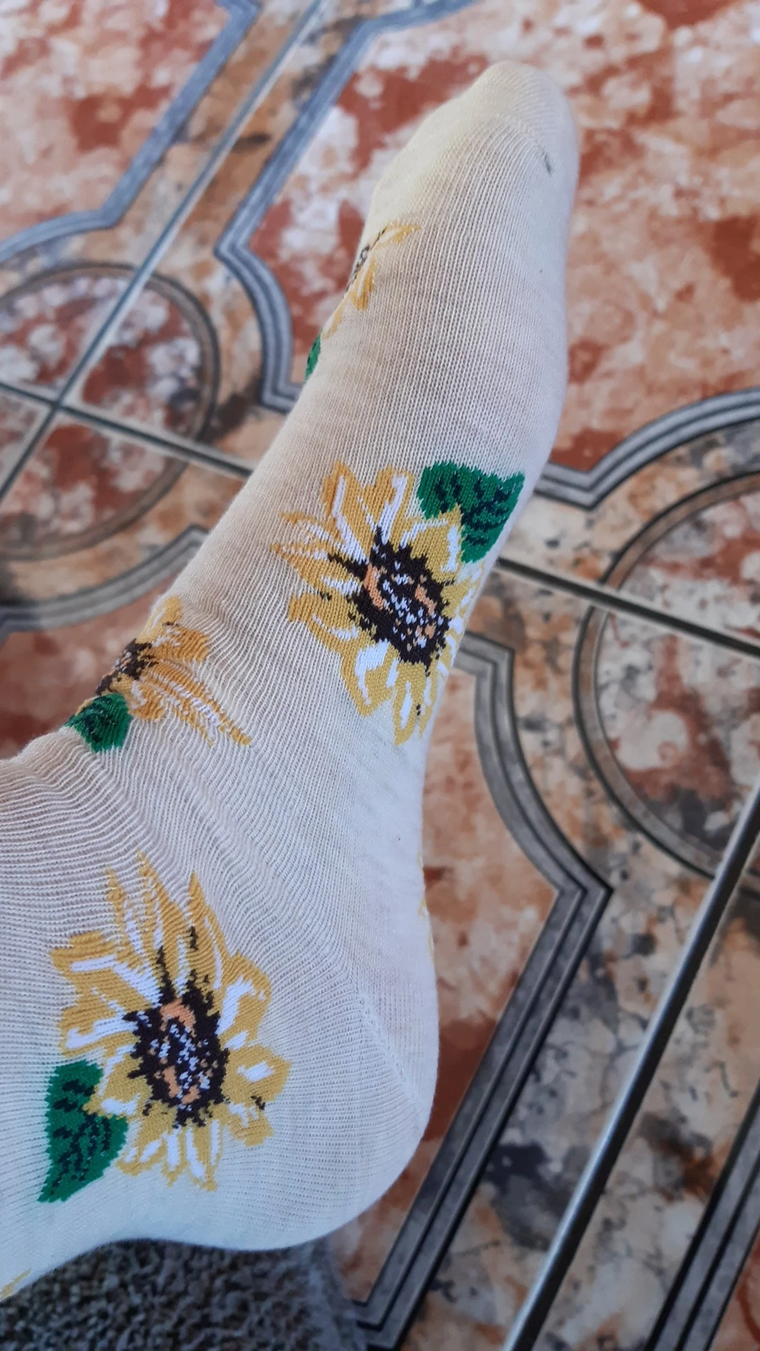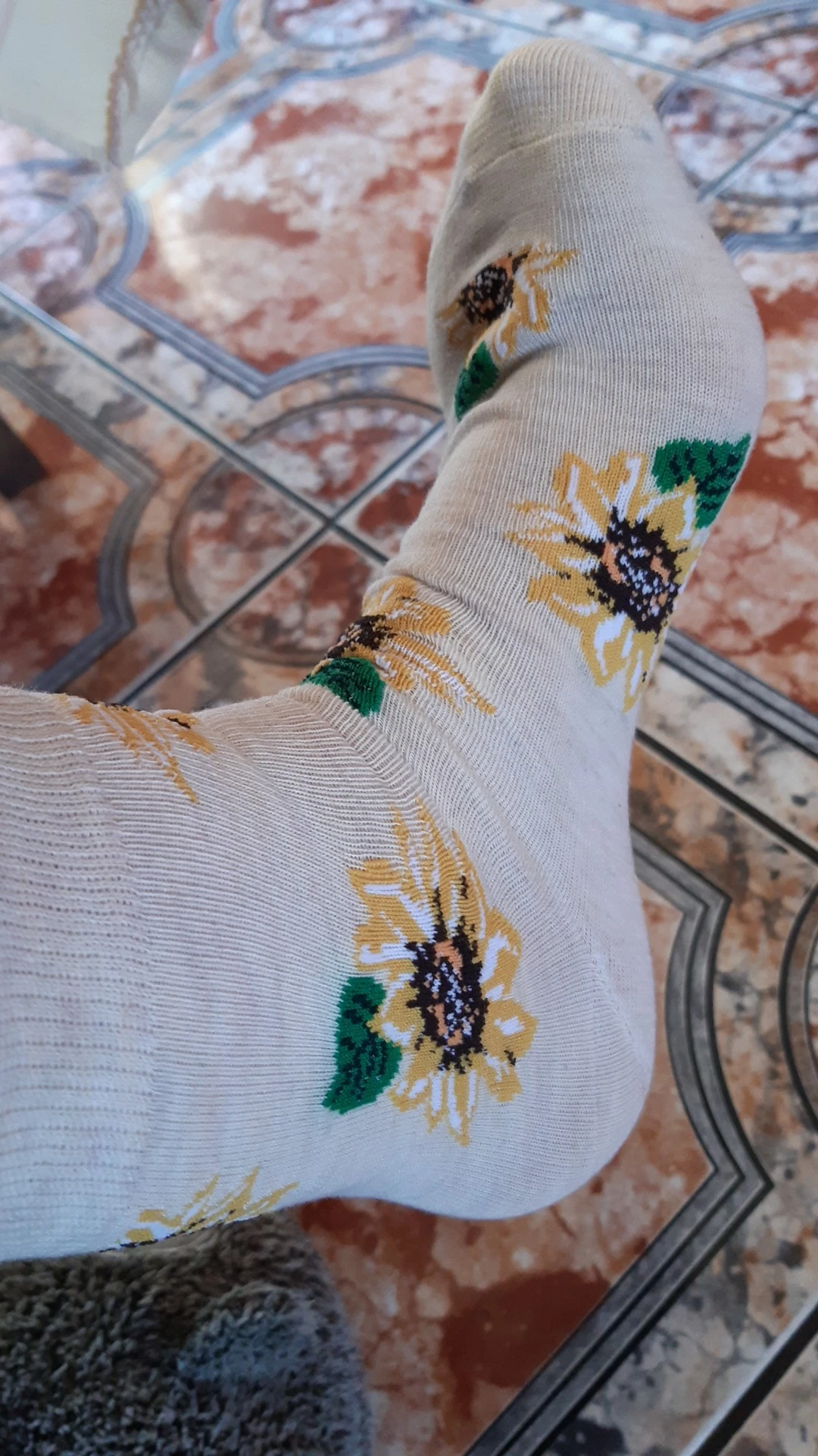 по фото продавца и вообще по фото сложно понять что вживую носки (с одуванчиками которые) НЕ серые, они бежево-серые! основной акцент у них в бежевый цвет. ни с одной моей светло-серой одеждой они поэтому не смотрятся.. это почти нереально понять по фото, поэтому предупреждаю. если берете к конкретно серой одежде, то возьмите другие. на 37 размер слегка великоваты, идеально будет на ~39.