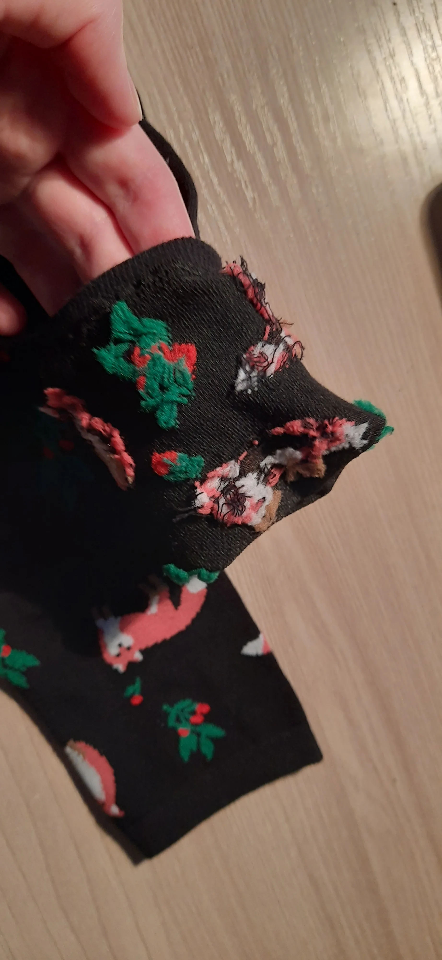 Качество материала кажется милым. Принт хорошо соответствует картинке. Мы надеемся, что носки прослужат более 10 прогулок.