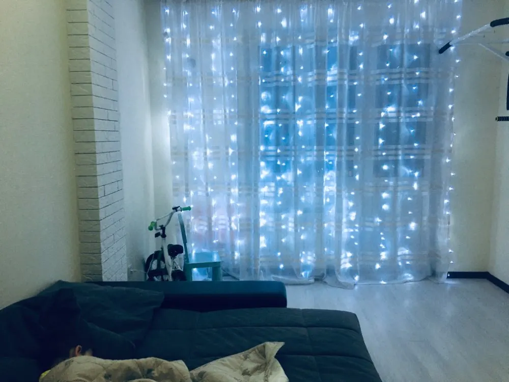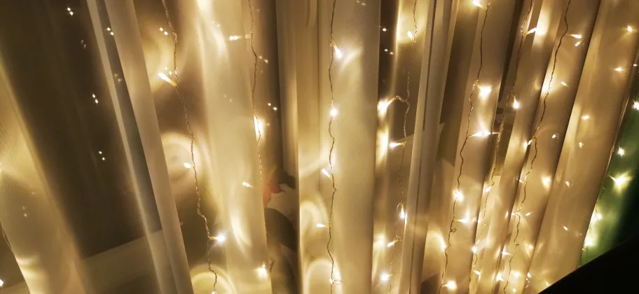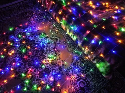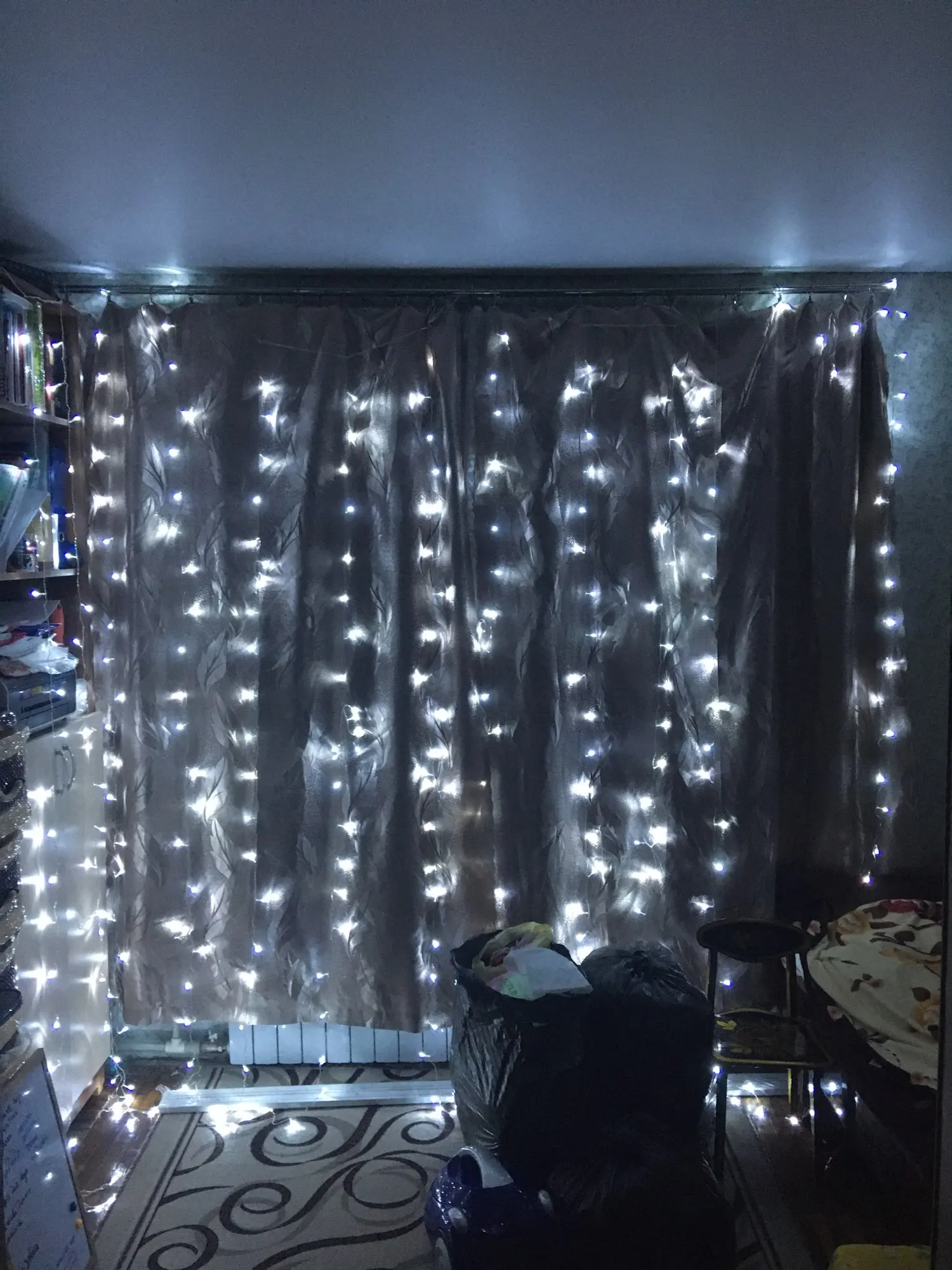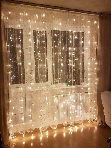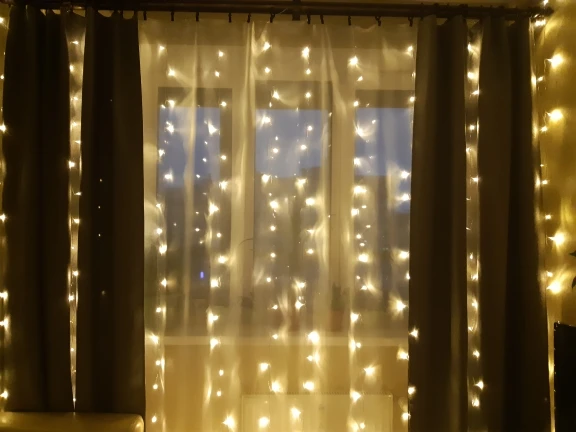 Очень качественная гирлянда, все как в описании 3*3. Приятный тепло белый свет создаёт уют. Гирлянда немного лежит на полу, но мне это нравится. Шла в течении месяца, заказывала заранее к новому году.