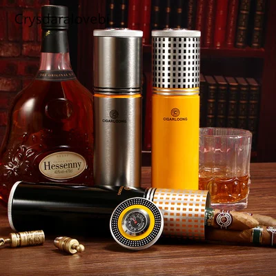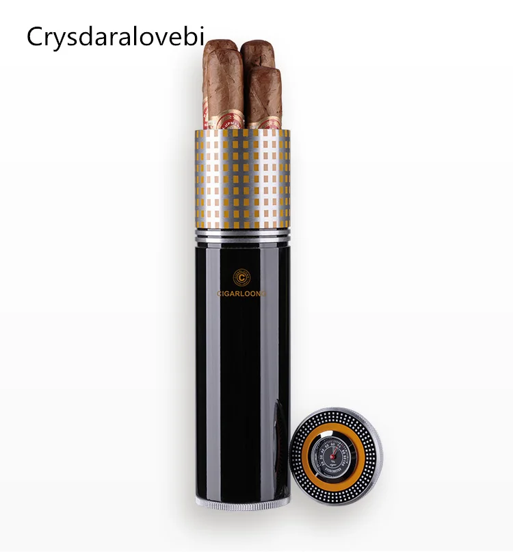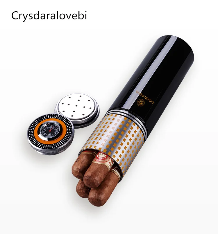 Мини-гаджеты, желтые, черные и Серебристые, дорожные, из алюминиевого сплава, сигарная трубка, портативная банка, металлический хьюмидор с увлажнителем, гигрометр