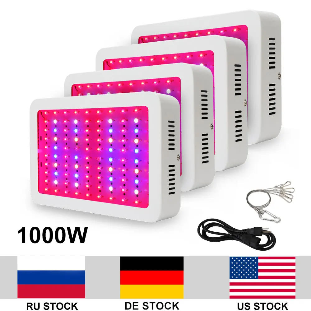 Светодиодная лампа с двойным чипом, полного спектра, 4 шт.лот, 1000 Вт, AC85 265 в, для выращивания комнатных растений, быстрого роста, цветения