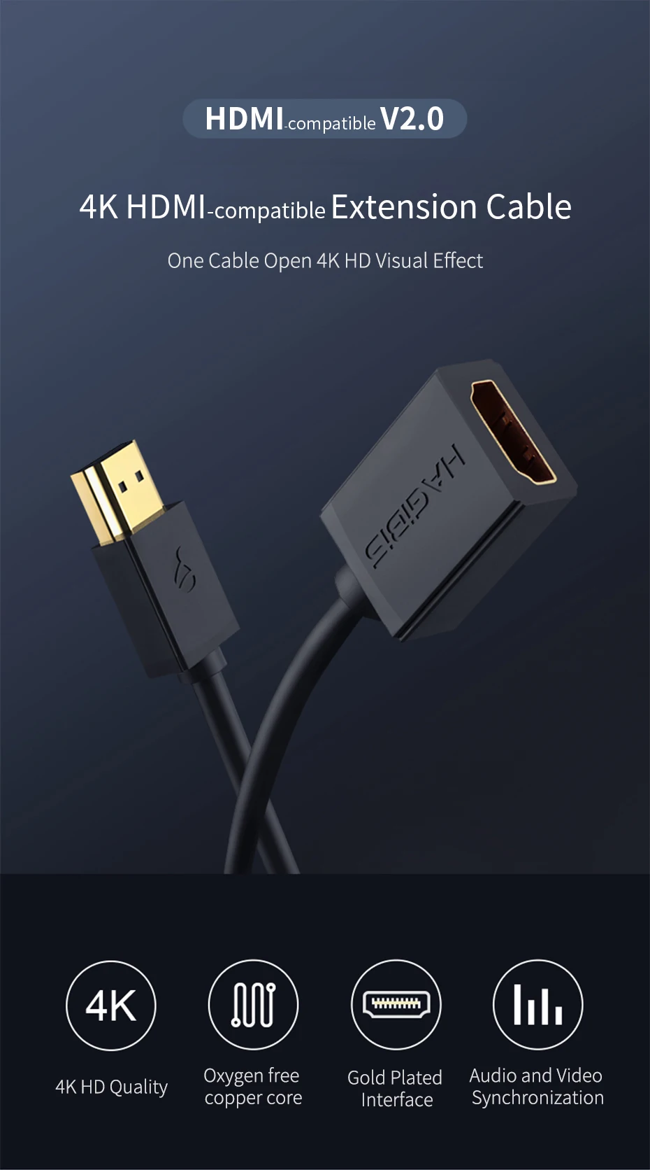 Удлинительный кабель HDMI, Hagibis, 4K, 2,0 штекер-гнездо, для компьютера, HDTV, ноутбука, проектора, PS3, 4