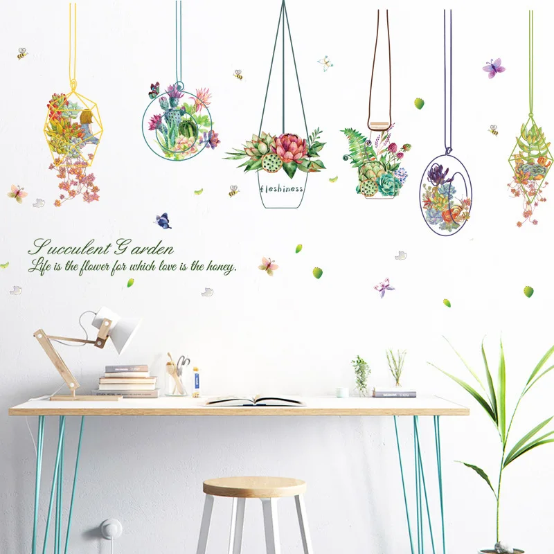 Корзина для суккулентов, настенные Стикеры, домашний декор, сделай сам, наклейки для детской комнаты, фоновая роспись для гостиной, художественные постеры, наклейки на окна