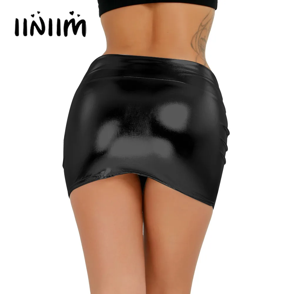 Пикантная женская ночная Клубная одежда iiniim, блестящая облегающая лакированная Кожаная Мини-юбка Wetlook, Коктейльные костюмы, юбки для выступлений
