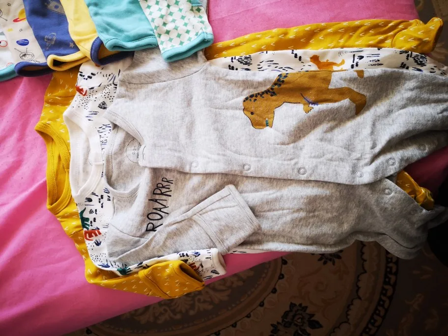 Комбинезоны хорошего качества. Понравились очень. Размер 6-9 мес. на малыша 5.5 мес. 8200 весом по размеру, с небольшим запасом.В Беларусь шли долго, почти 3 мес.