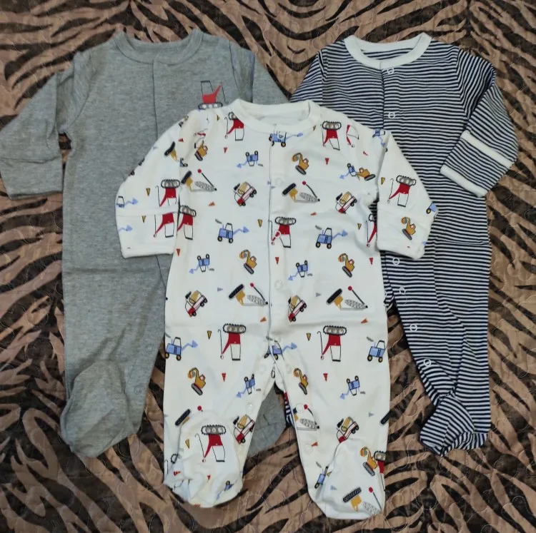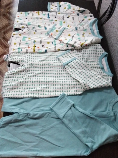 комбенизоны качественные, подошли отлично. На ребенка 2 месяца брала 0-3 немного большеват. есть запас с носками отлично. после стирки не деформировался, ткань мягкая приятная. шло около месяца.