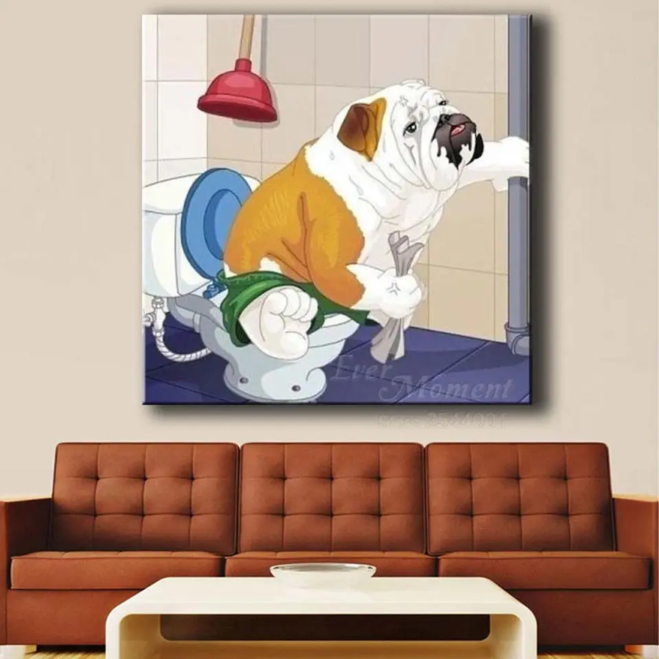 Алмазная живопись Ever Moment, Забавный Туалет, собака, алмазная вышивка 5D, стразы, полный макет, квадратные камни, комплект для животных ASF934