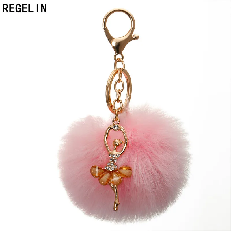 Брелок для ключей REGELIN с танцующим ангелом, пушистым помпоном для шарик из искусственного кроличьего меха, женский брелок с ювелирное изделие в подарок с подвесками