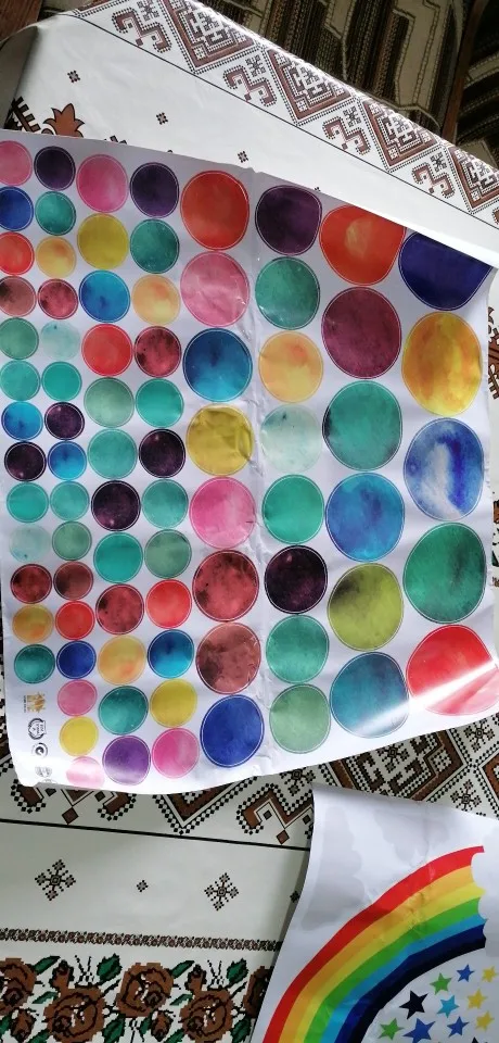 Отличный декор для стен. Поставляется на одном листе с различными кругами и яркими цветами. Отлично подходит для комнаты моей дочери. Она любит рисовать, и они напоминают нам о палате. Быстрая доставка. Доставка занимает всего 2 недели. Буду заказывать у этого продавца снова.