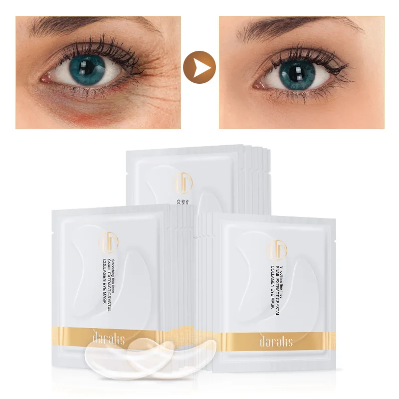 Маска для глаз Daralis, 20 шт., коллагеновая маска для глаз с кристаллами улитки, против морщин, гелевые патчи, пакеты для удаления темных кругов, 10 упаковок