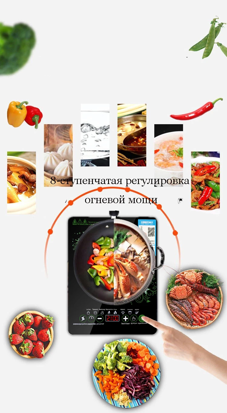 Индукционная плита 2200 Вт, для дома, высокомощная, для кипячения воды, с сенсорным экраном