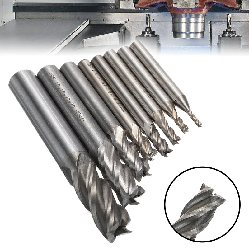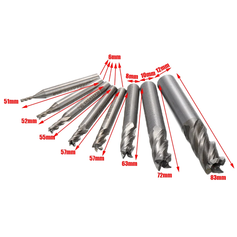 НАБОР КОНЦЕВЫХ ФРЕЗ Mayitr из быстрорежущей стали, 4 канавки, 2-12 мм, 8 шт.
