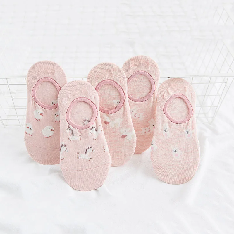 5 пар/партия, женские носки ярких цветов, носки-башмачки с рисунком маленьких животных