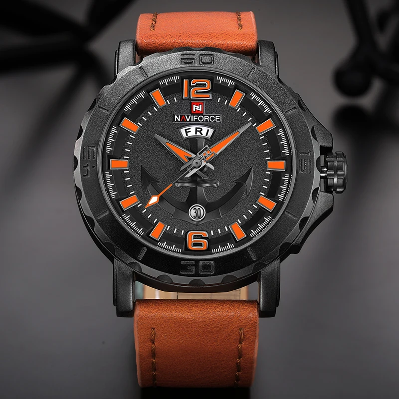 Naviforce Для мужчин Творческий Спортивные часы модные Элитный бренд часы Для мужчин кожа аналоговые кварцевые наручные часы Relogio Masculino