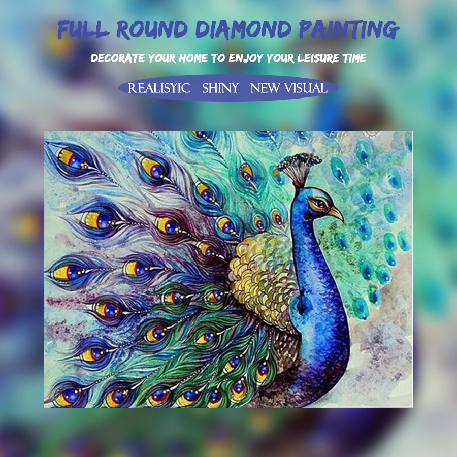 Полноразмерная 5D круглая вышивка крестиком своими руками Бриллиантовая живопись Стразы картины Вышивка Животных