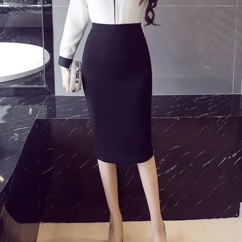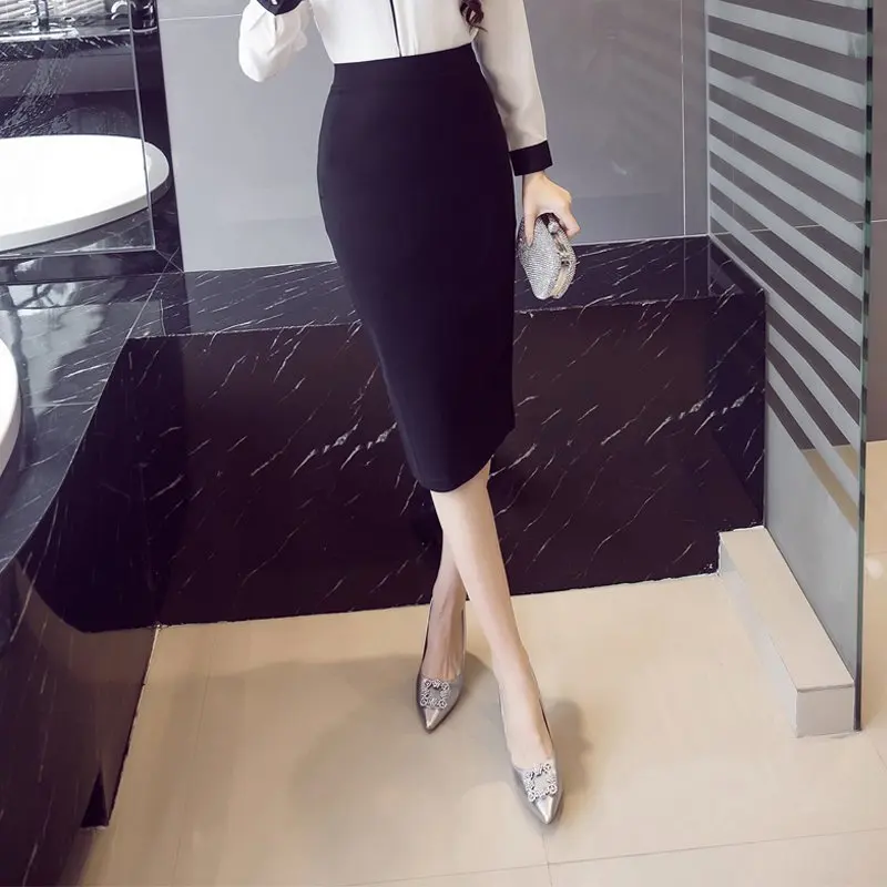 Женская длинная юбка-карандаш, повседневная красная офисная юбка с высокой талией, S-5XL, черная, для лета, 2021