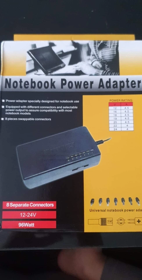 (EN)Wonderful! Universal-Power-adapter/Charger forNotebook "Ninth World Model 9568" corresponding+. Quality+. Includes 8 replaceable-plugs. Is working. Оutput voltage set by-slider. I fix voltage=12V by scotch. Useful length=166cm. Nice:220V-entry made as-inDesktop,not as-inNotebook. Packed in carton box,later in bubble packaging,later in strong PET-packet. Post was "AliExpress Saver Shipping",Tracking+. The parcel was arrived in 16 days!Delivered to post office.Many thanks! (RU)Чудесно! Универсальный-Адаптер-питания/Зарядное-устройство дляНоутбука "Ninth World Model 9568" соответствует+. Качество+. 8 сменных-штекеров. Заработал. Выходное напряжение устанавливается ползунком. Напряжение=12V я закрепил скотчем. Полезная длина=166см. Приятно:Вход-220V сделан как-уДесктопа,а не как-уНоутбука. Упакован в картонную коробку,далее в пузырьковую упаковку,далее в прочный ПЭТ-пакет. Почта "AliExpress Saver Shipping",Трекинг+. Посылка была доставлена за 16 дней!Получал на почте.Большое спасибо!