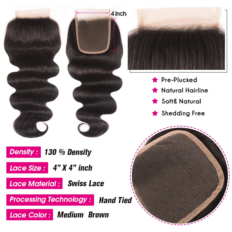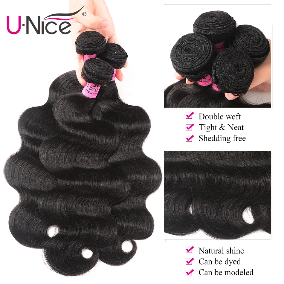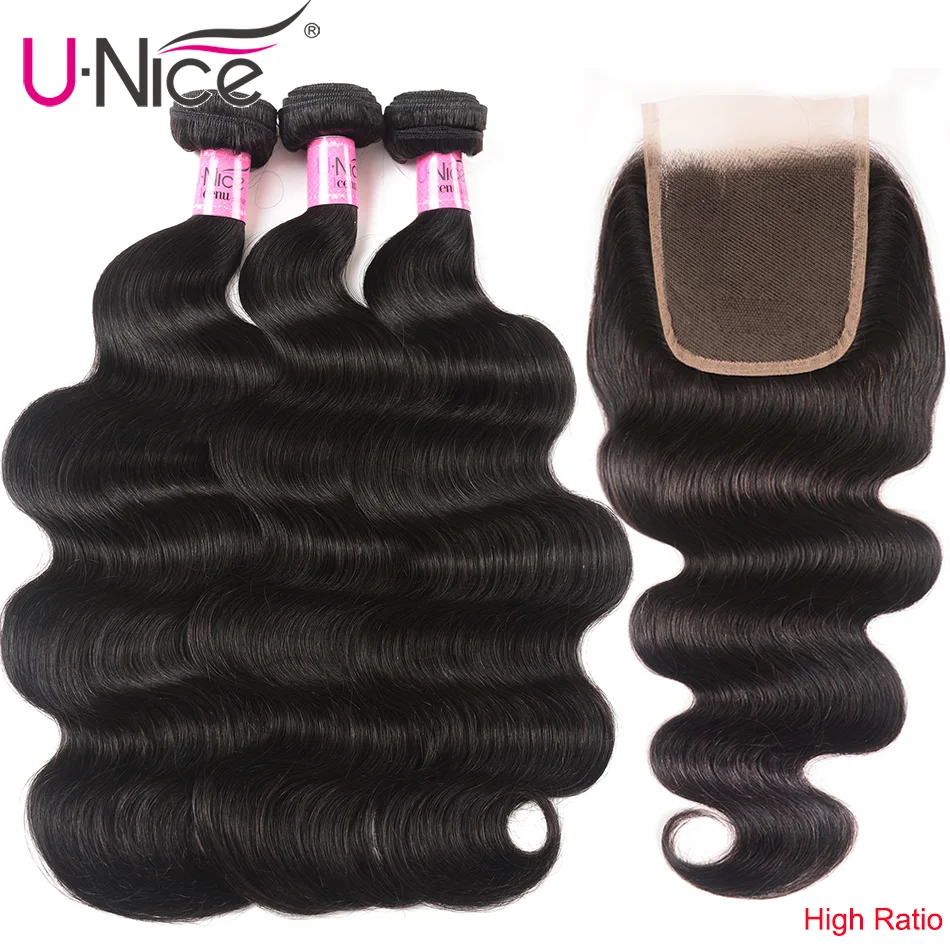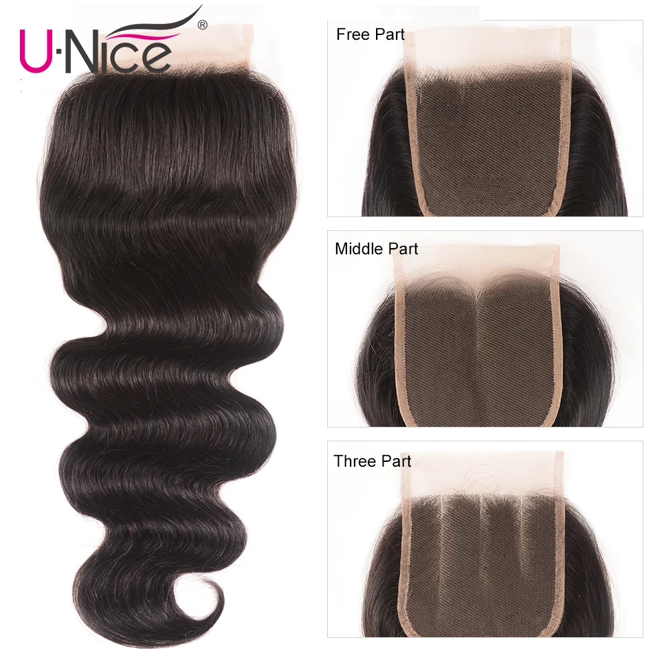 Волосы UNICE 4x4, кружева с малазийскими объемными волнами, 34 пряди с кружевными вставками, волосы Remy, человеческие волосы, пряди