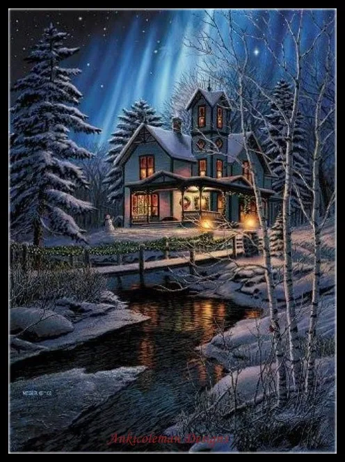 Зимняя Вышивка в виде деревни, Заснеженная деталь, рукоделие, 14 ка...