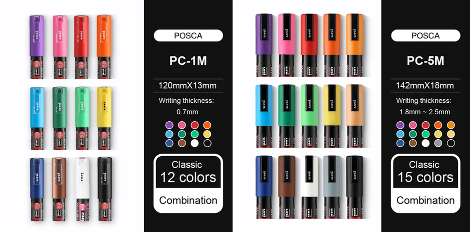 Маркеры UNI POSCA, набор PC-1M, PC-3M, PC-5M, поп-постер, рекламная...