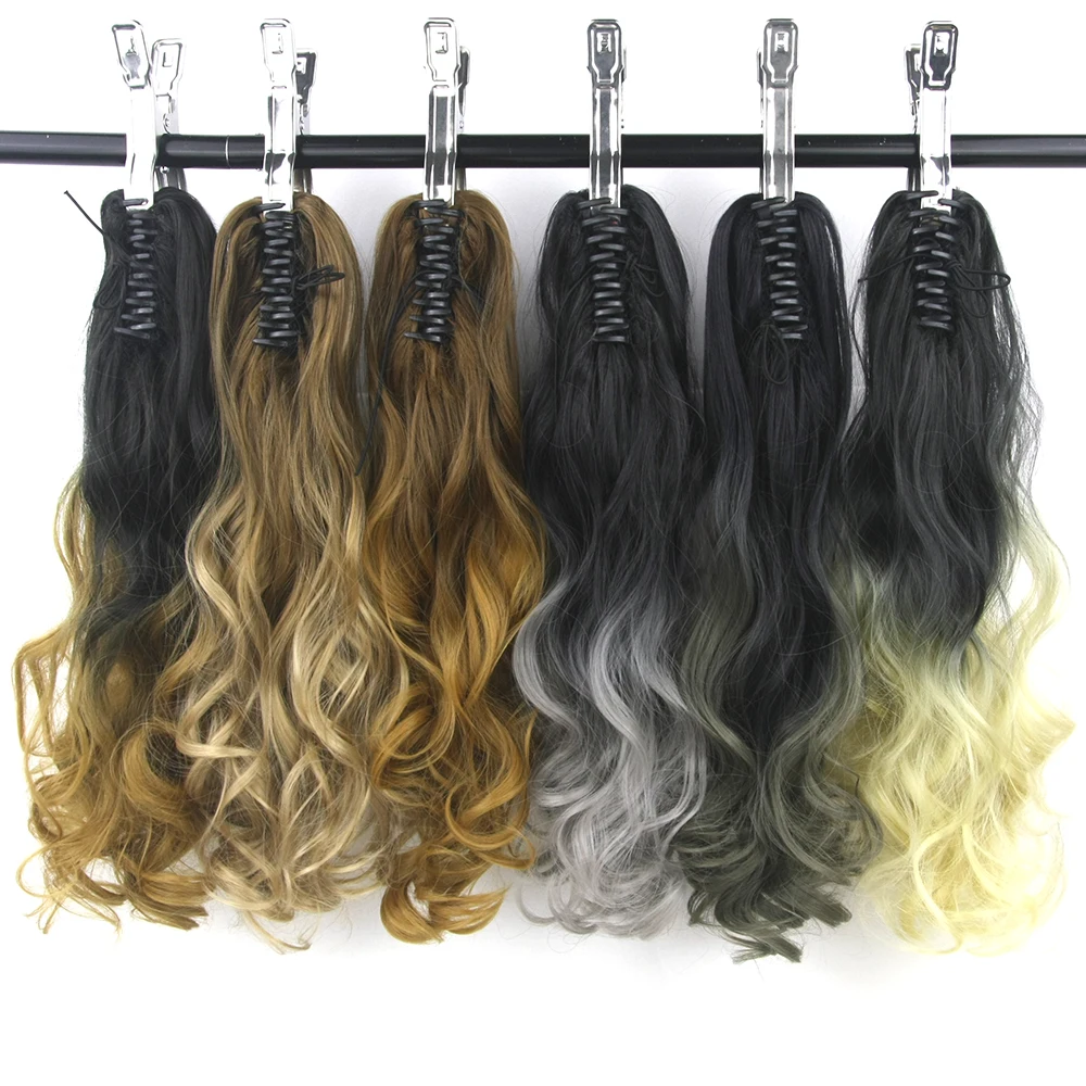 Soowee волнистые черно-синие когти Омбре конский хвост накладные пряди удлинение волос заколка для волос конский хвост на шпильках