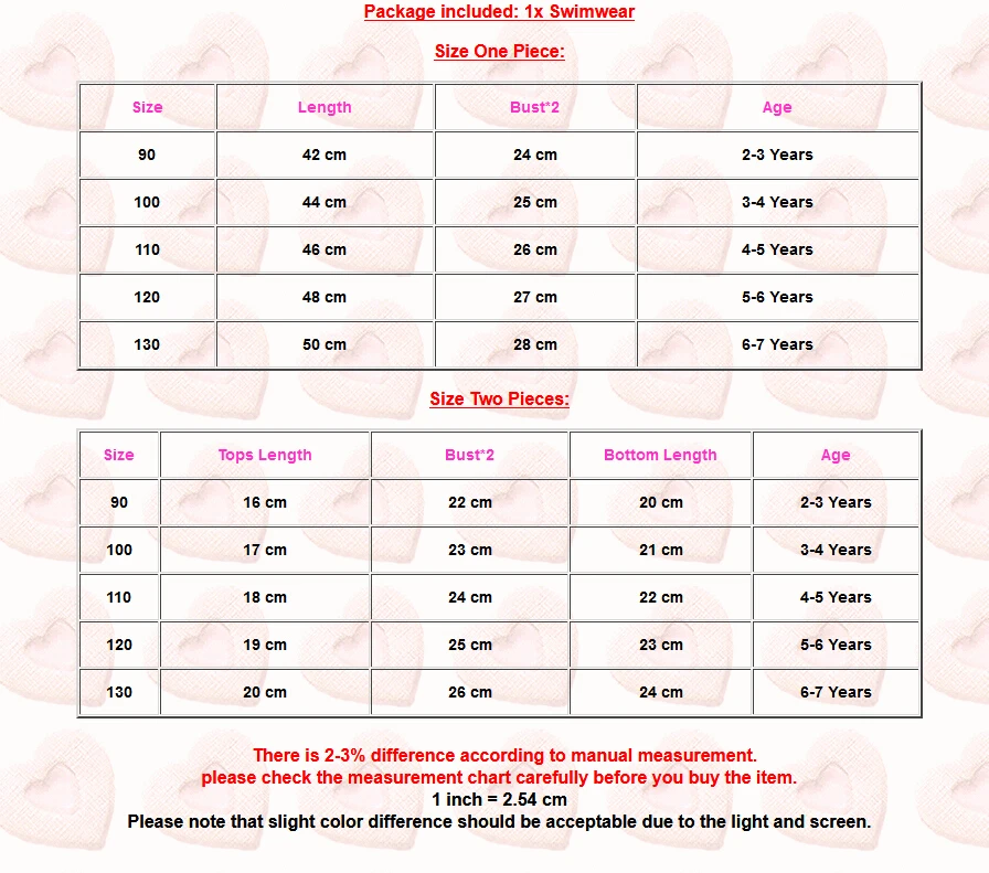 РазмерДлина топаБюст * 2Длина низаВозраст9016 см22 см20 смОт 2 до 3 лет10017 см23 см21 смОт 3 до 4 лет11018 см24 см22 смОт 4 до 5 лет12019 см25 см23 смОт 5 до 6 лет13020 см26 см24 смОт 6 до 7 летРазница в 2-3% в соответствии с измерениями вручную.Прежде чем купить эту товарную позицию, просим тщательно свериться с таблицей размеров.1 дюйм = 2,54 смОбратите внимание что небольшая разница в цвете считается приемлемой. Это может быть связано с положением источника света и с настройками экрана.Предварительный просмотр: