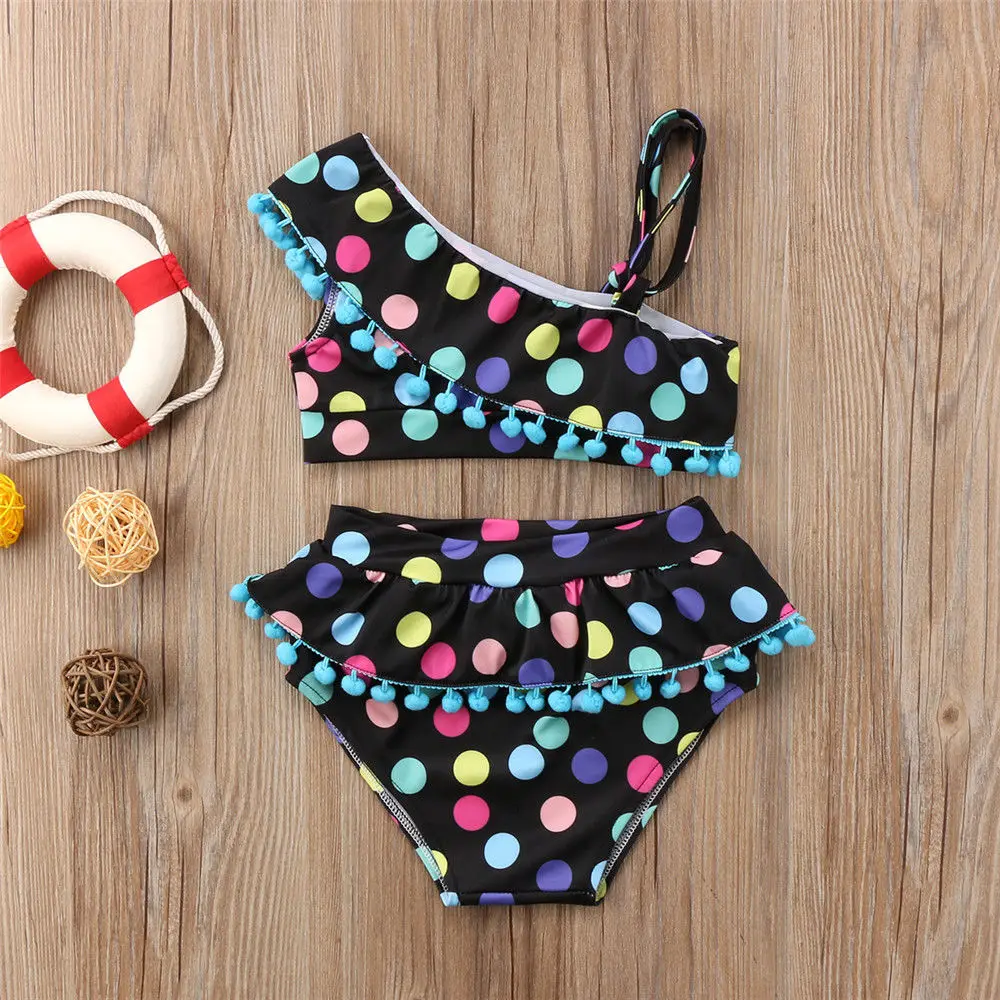 Лидер продаж, летний купальник для маленьких девочек, комплект бикини в горошек с оборками, купальный костюм, купальник, пляжная одежда