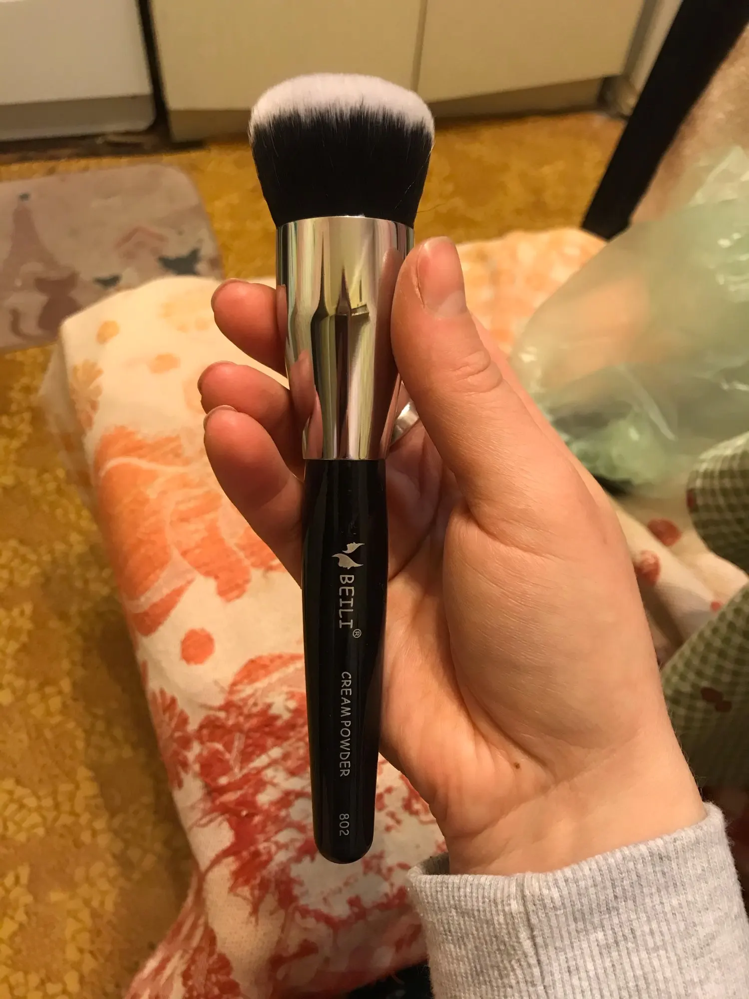 Кисть приехала примерно за 2 недели, при транспортировке наёмно помялся ворс из-за смещённой в упаковке пленки. Но после мытья она пришла в изначально положение. Кисть плотно набита, хорошо наносит тон, удобно наносить у крыльев носа. Думаю, идеально подойдёт для кремового контурирования. У меня были уже кисти от этого продавца, и захотелось попробовать какую то новую форму кисти для тонального, чтобы она была небольшого размера. Так как у меня есть 802 и 804 кисть от Beili, 809 оказалась как раз нужного размера. Люблю ей наносить тонким равномерным слоем тон, а затем растушёвывать его спонжем, чтобы добиться максимально незаметного покрытия, которое будет «припечатано» к коже, будет долго держаться и не останется на маске, а останется на коже. Продавца рекомендую!
