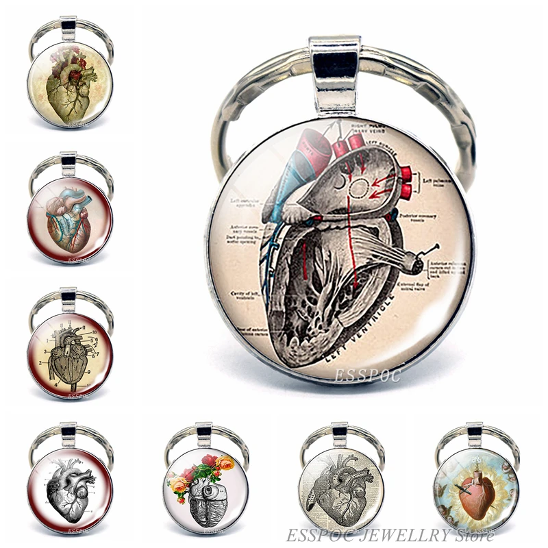 Анатомический брелок в форме сердца, металлический стеклянный брелок для ключей, подвеска со знаком сердцебиения, подарок биологу и врачу