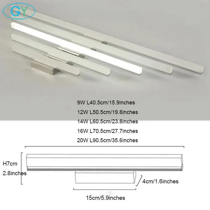 Современная светодиодная зеркальная лампа 40 см, 50 см, 60 см, 70 см, 90 см, настенная лампа из нержавеющей стали с алюминием и акрилом для туалетной комнаты, лампа для макияжа