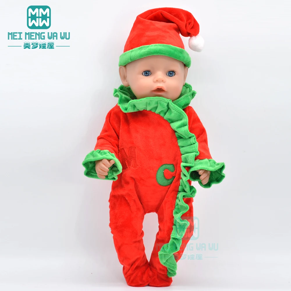 Одежда для кукол, 43 см, аксессуары для новорожденных, Высококачественная супер Мягкая красная детская Рождественская одежда для ползания + шапочка