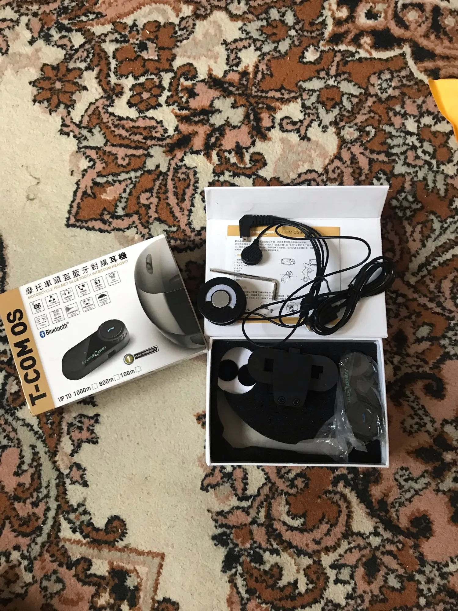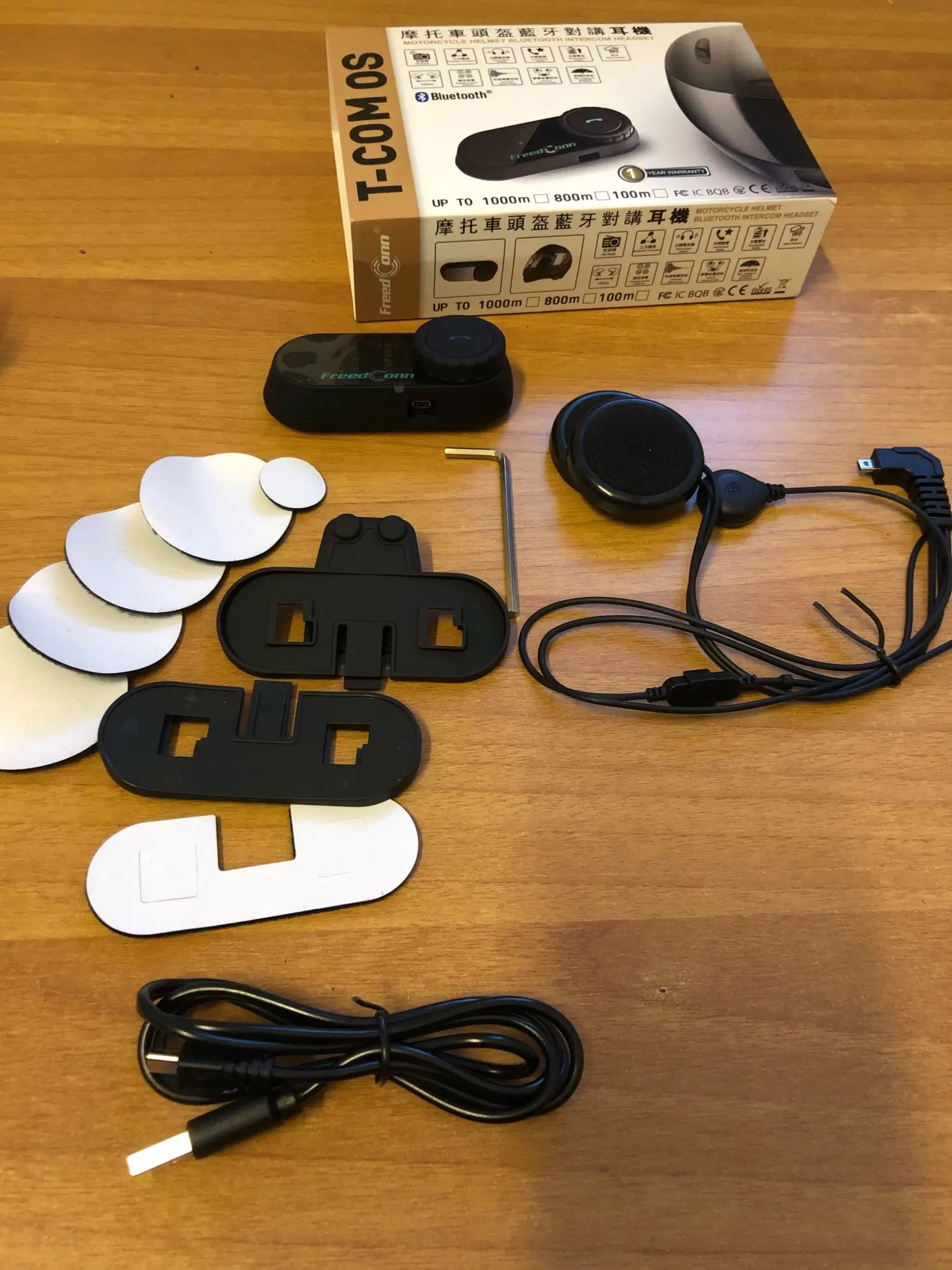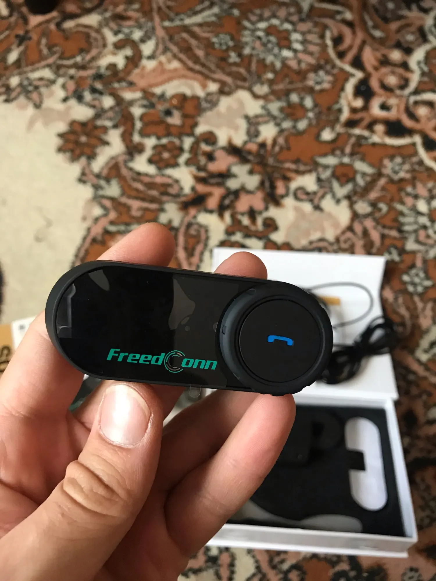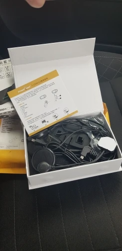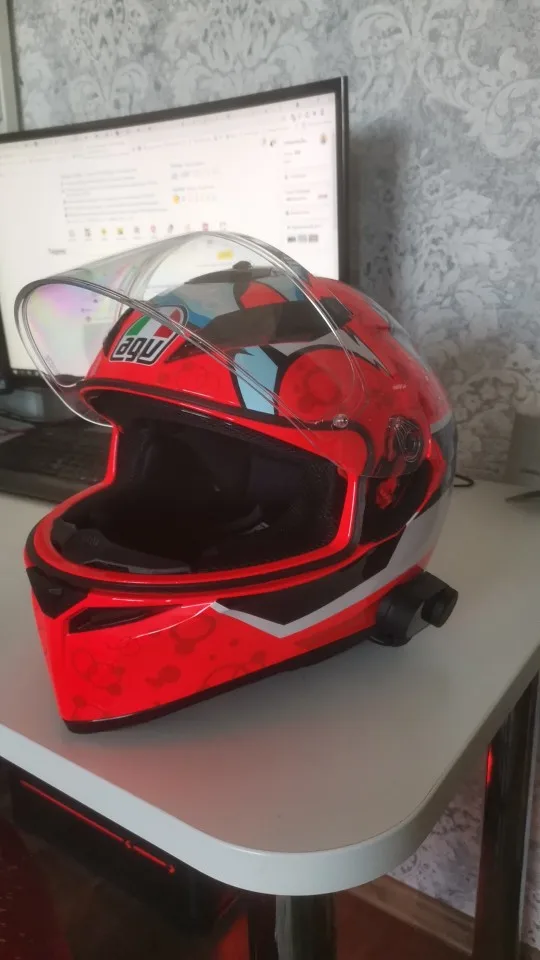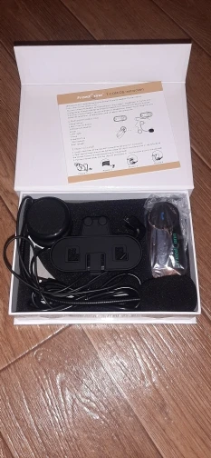 Дошло всё быстро и отслеживалось! Коробка целая, все есть в комплекте. В отличии от картинок нет крана, а только 2 моргающие точки. Установил на шлем(у меня agv k3 sv), звук супер, и разговаривать хорошо, и музыку слушать. Есть 1 НО, специальные отверстия в моём шлеме маловаты для этих динамиков, в итоге когда одеваешь шлем они немного давят на уши, на левое ухо прям очень неприятно и долго так не поездишь(надо будет вручную вырезать углубления в пенопласте шлема, что бы утопить динамики вглубь) и тогда будет отлично! Так что если у вас такой же шлем или отверстия для динамиков не большие вам тоже придётся это делать! А так покупкой полностью доволен! Товар супер!