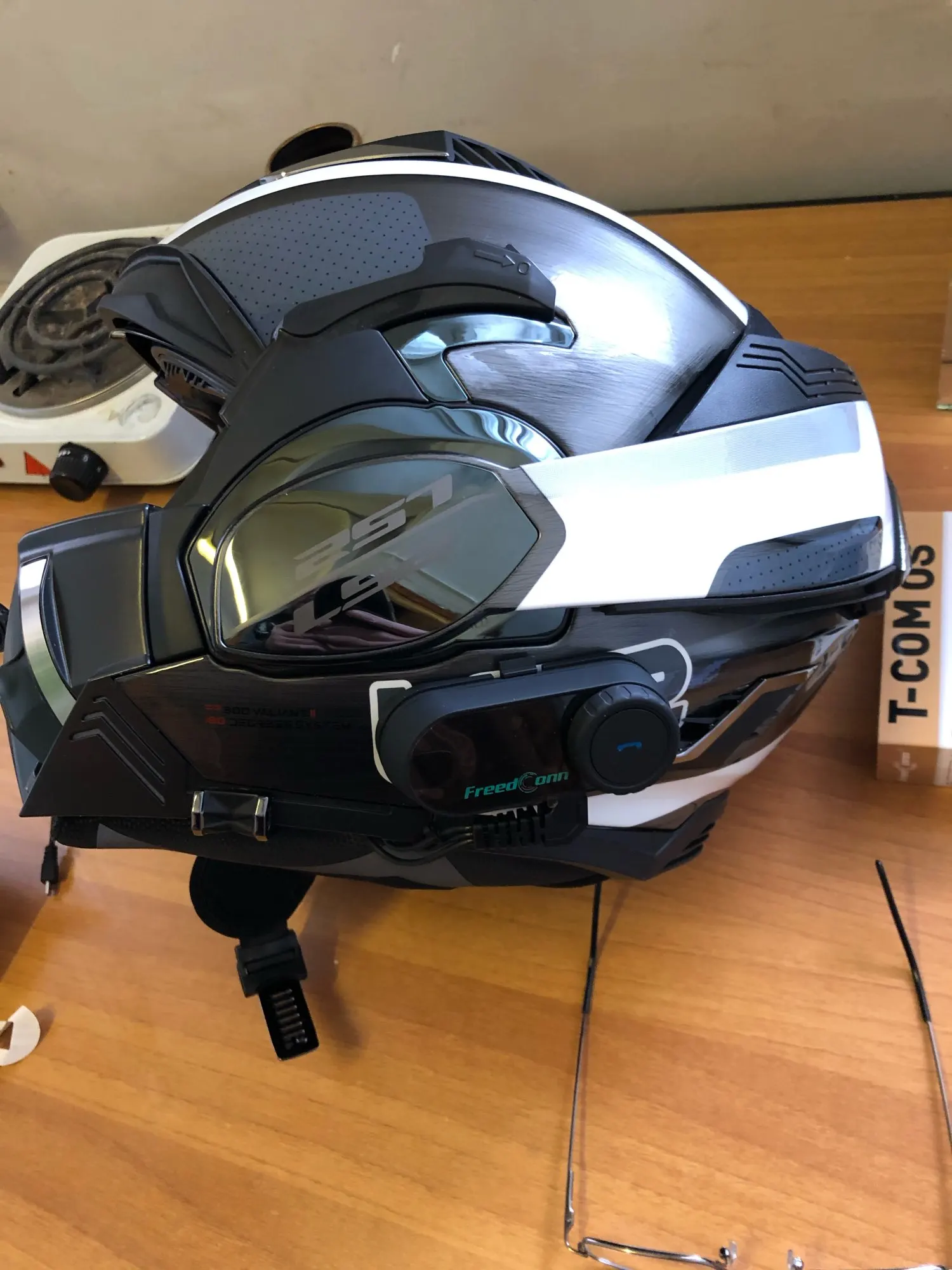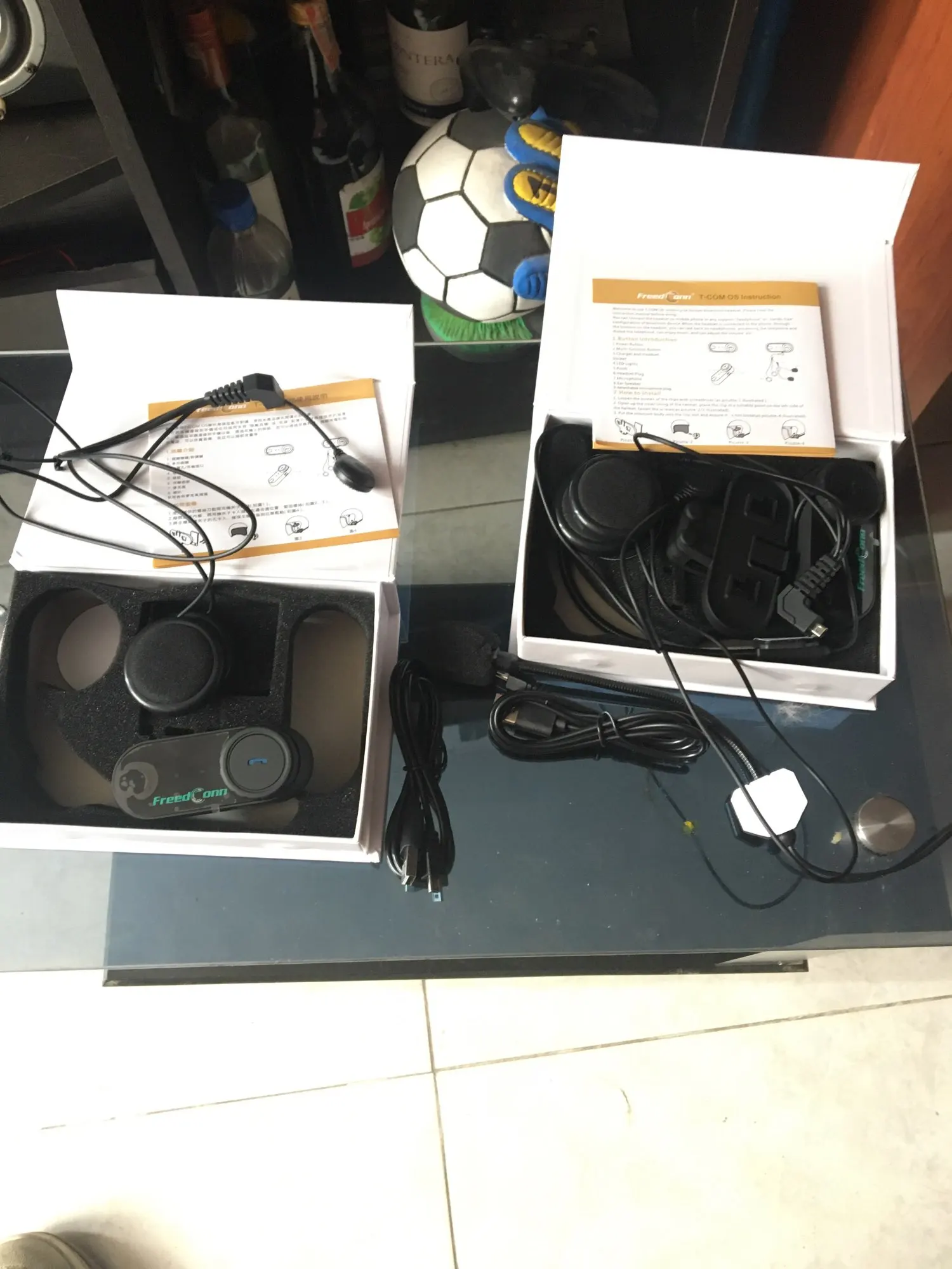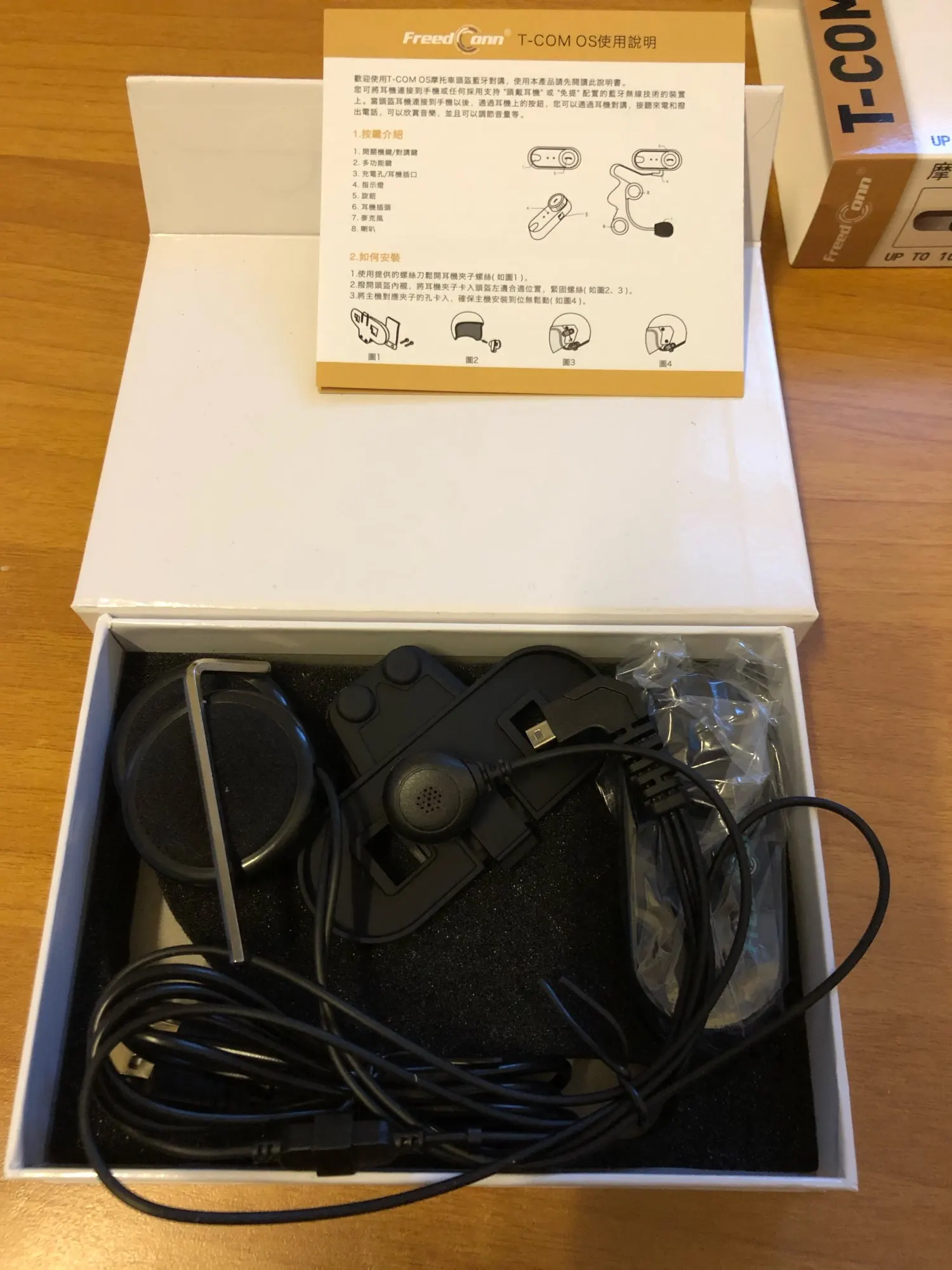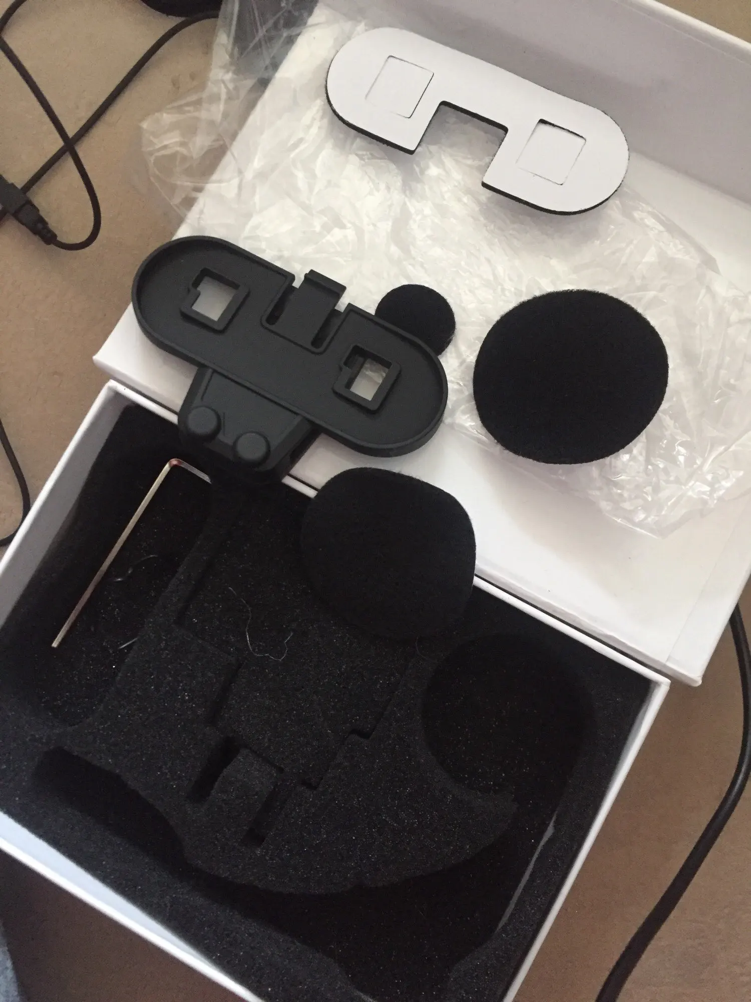 Дошло всё быстро и отслеживалось! Коробка целая, все есть в комплекте. В отличии от картинок нет крана, а только 2 моргающие точки. Установил на шлем(у меня agv k3 sv), звук супер, и разговаривать хорошо, и музыку слушать. Есть 1 НО, специальные отверстия в моём шлеме маловаты для этих динамиков, в итоге когда одеваешь шлем они немного давят на уши, на левое ухо прям очень неприятно и долго так не поездишь(надо будет вручную вырезать углубления в пенопласте шлема, что бы утопить динамики вглубь) и тогда будет отлично! Так что если у вас такой же шлем или отверстия для динамиков не большие вам тоже придётся это делать! А так покупкой полностью доволен! Товар супер!