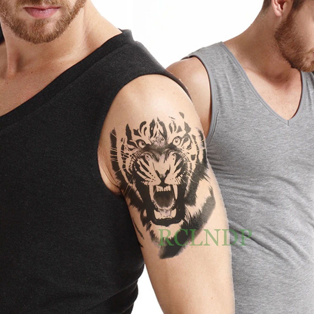 Водонепроницаемая Временная тату-наклейка, ревущая голова тигра, тату-наклейка, s флэш-тату, поддельные татуировки для мужчин