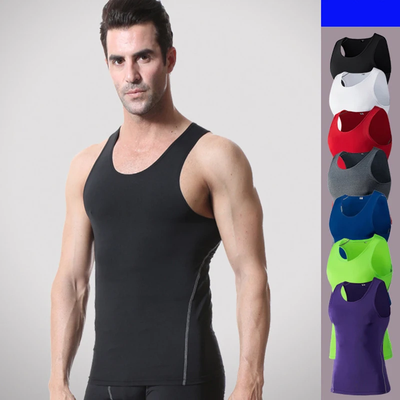 Майка мужская компрессионная для бега, базовый слой, эластичная рубашка без рукавов для спортзала, фитнеса, бодибилдинга, быстросохнущая